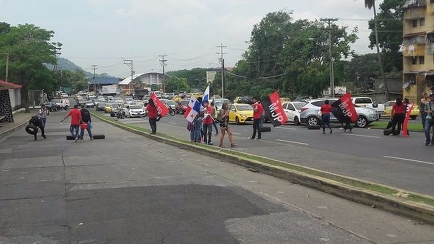 Un grupo de estudiantes de la Universidad de Panamá (UP) cerró ambos sentidos de la vía Transístmica, encendió neumáticos y protestó con banderas en mano.