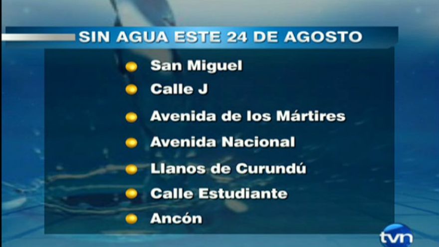 El Instituto de Acueductos y Alcantarillados Nacionales (Idaan), informó que a partir de las 7:00de la mañanahasta las 6:00 de la tardede mañana,domingo 24 de agosto, varios sectores de la capital estarán sin el suministro de agua potable, debido a unos trabajos que realizará la Autoridad del Canal de Panamá (ACP), en la estación de bombeo de Balboa.