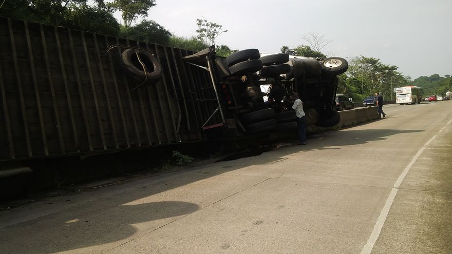 El accidente se produjo en horas de la mañana y todavía el camión no ha sido removido, pero un agente de la Policía de Tránsito dirige el tráfico para evitar que se congestione la vía.