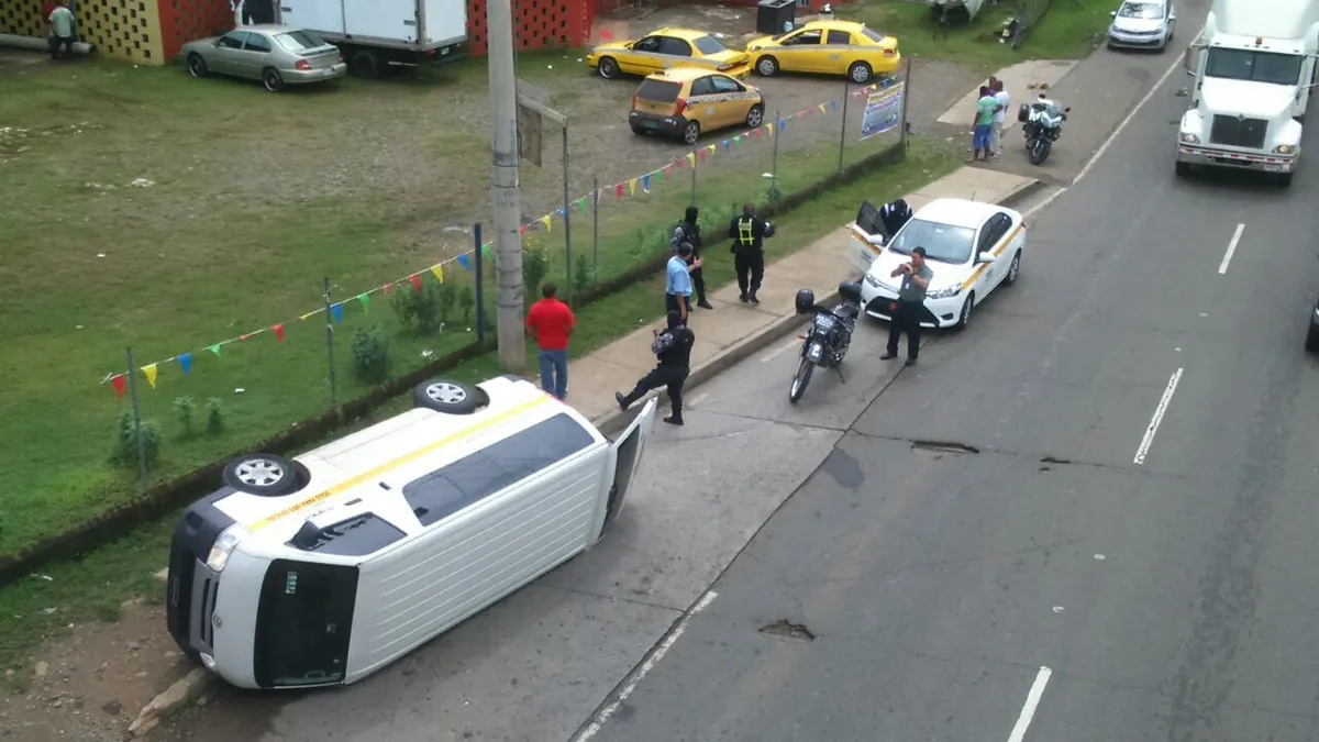 Un bus tipo panel se volcó en horas de la mañana de este lunes 1 de agosto, en el sector de Pacora.