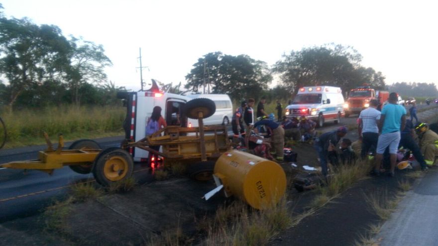 Se trata del vuelco de un bus blanco que dejó 10 heridos, quienes fueron atendidos por personal de emergencia de los bomberos.