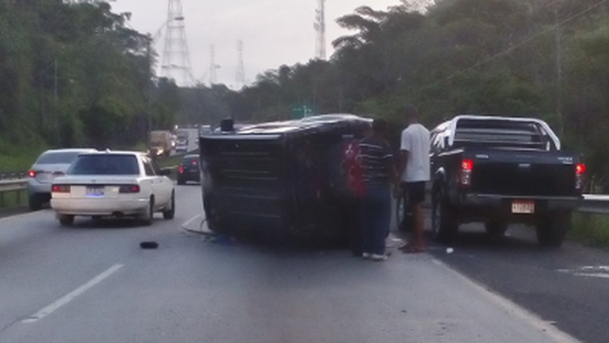 Usuarios de Twitter reportaron este miércoles 25 de mayo, un vuelco en la vía que conduce al puente Centenario, con dirección a ciudad de Panamá.