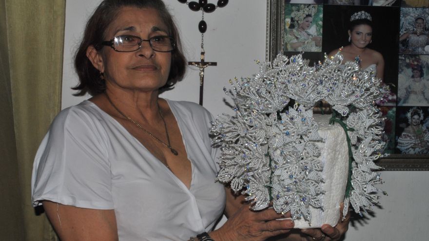 Contemplamos los tembleques que llevan piedras de cristal swarovski, comprados en Nueva York, auténticos de Austria, cada cabeza de 12 pares de tembleques tiene un costo de B/. 700.00, algunas personas le dicen que suba el precio porque contienen muchas pepas y están bien rellenos, pero doña Eneida nos dice que ella no tiene corazón para subirles el costo.