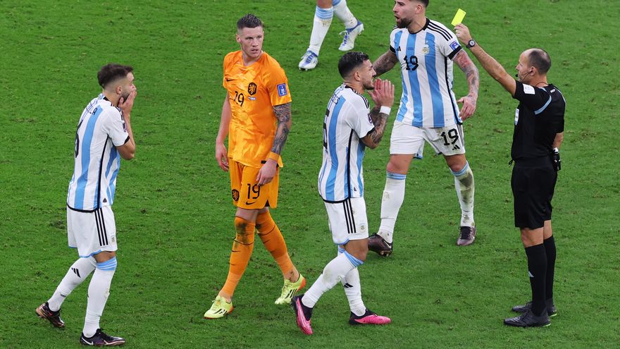 Lahoz se convirtió en el juez con más tarjetas amarillas exhibidas en un encuentro. En total amonestó a 14 jugadores. A eso le sumó 48 infracciones sancionadas, 30 para la selección albiceleste y 18 para la de los neerlandeses; además de no saber encauzar con autoridad las discusiones y grescas de los protagonistas de ambos conjuntos en el campo de juego.