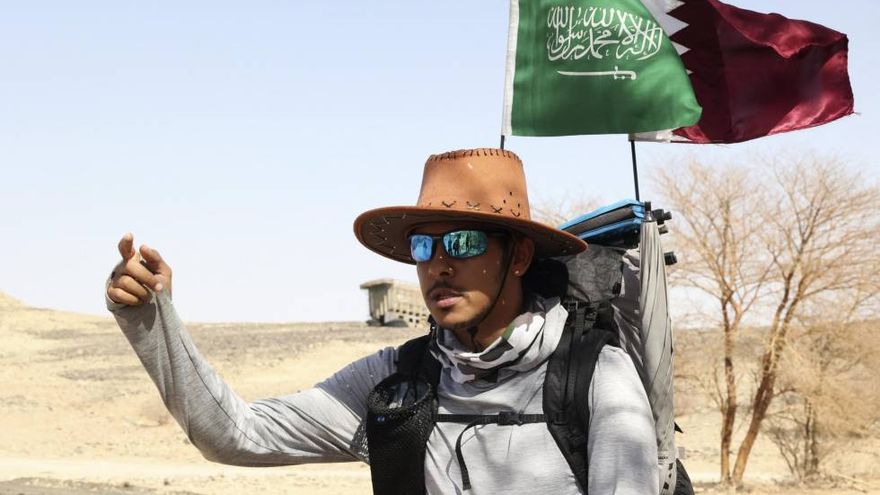 Abdalá Al-Salmi se lanza a una aventura considerada como "loca" por algunos de sus familiares: un periplo en solitario durante dos meses y a lo largo de 1.600 kilómetros, desde su villa de Yedá, en el oeste saudita, hacia Doha, capital de Catar, que acoge el Mundial de fútbol del 20 de noviembre al 18 de diciembre