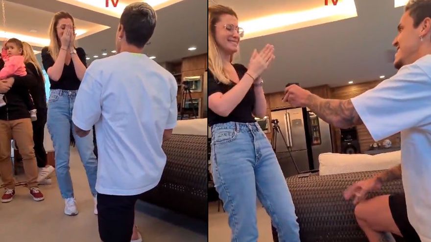 El ariete se arrodilló frente a su futura esposa, la psicóloga Fernanda Nogueira, recibió su aprobación y la pareja se abrazó frente a la reportera que cubría el evento y personas cercanas que lo acompañaban en su casa.