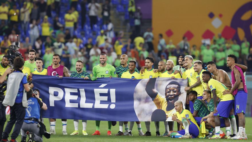Cuando terminó el partido, "La Canarinha" le hizo un homenaje a su mayor ídolo. En el medio de la cancha, los jugadores sostuvieron una bandera con el nombre de Pelé, que está actualmente hospitalizado.