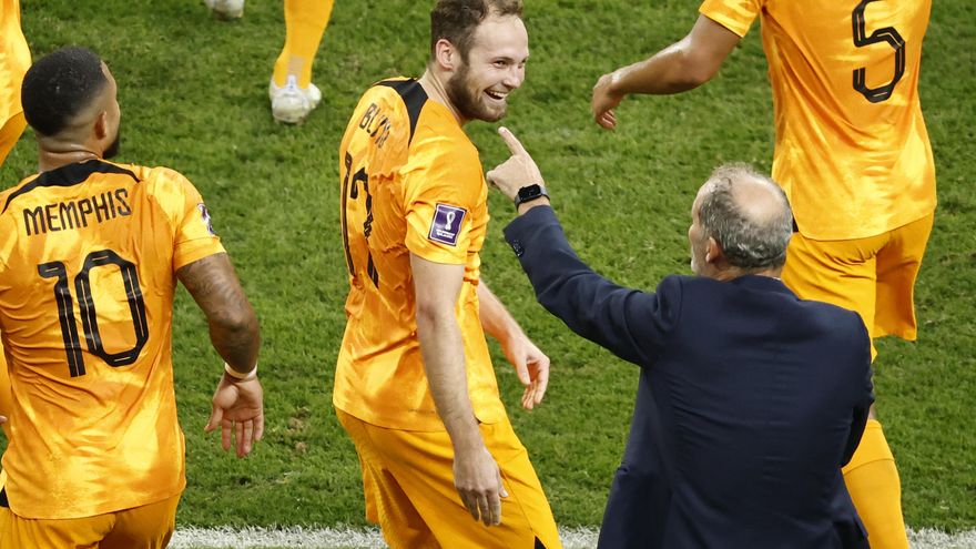 El momento al que hacemos referencia se dio en el partido entre Países Bajos y Estados Unidos. Daley Blind anotó el segundo gol del equipo neerlandés y lo celebró con su padre.