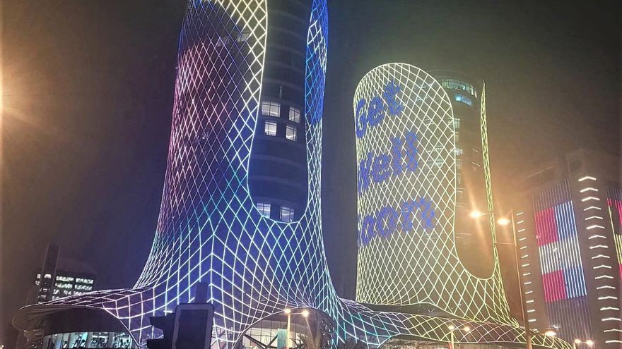 La ciudad de Doha, donde se celebra actualmente el Mundial-2022, decoró el sábado varios de sus edificios con una foto de Pelé, actualmente hospitalizado en Brasil por una "infección respiratoria", con un mensaje deseándole una rápida recuperación, según comprobaron periodistas de la AFP.