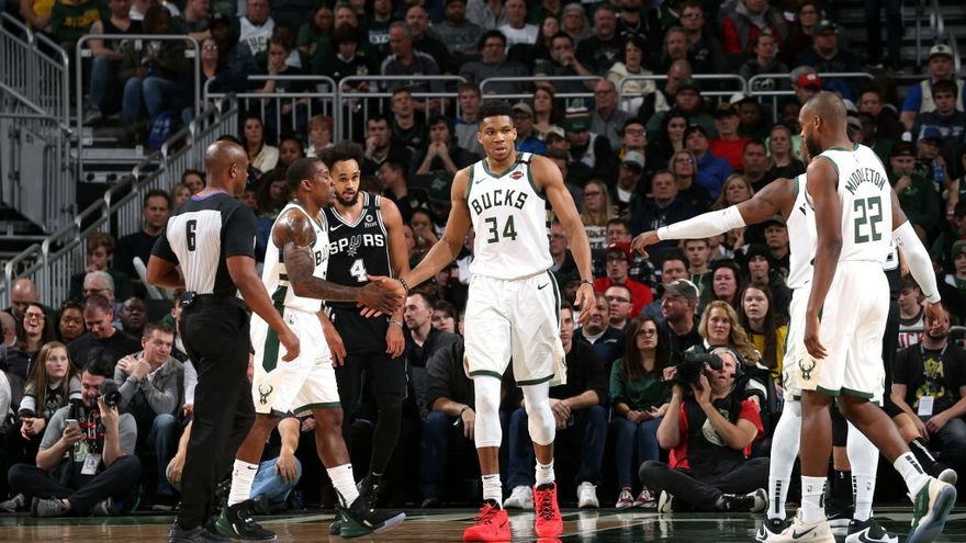 El astro griego Giannis Antetokounmpo, reinante Jugador Más Valioso, anotó 19 de sus 32 puntos en el tercer cuarto para ayudar a sus Milwaukee Bucks, líderes de la NBA, a una victoria este sábado sobre los San Antonio Spurs con marcador de 127-118.