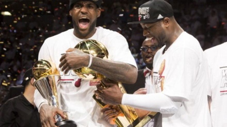 LeBron James lo tenía claro: quería hacer historia en la NBA y hacerla con Dwayne Wade y Chris Bosh a su lado. Por eso aceptó su transferencia al Heat de Miami, donde pudo reunirse con sus dos amigos. La jugada no fue caprichosa. Está claro que James apostó a ganador. "La visión que tuve cuando decidí venir aquí se está haciendo realidad", declaró James luego de que el Heat derrotó a los Spurs 95-88 en el séptimo partido de la final y ganó su segundo título seguido de la NBA el jueves. James ya era el mejor jugador de la NBA cuando hace tres años optó por irse de Cleveland a Miami, una decisión que muchos vieron como un indicio de que admitía que no podía ganar un campeonato por sí solo. James tenía claro eso también. En los tres años que lleva en Miami, LeBron ha jugado la final y ha ganado dos. Bosh no aportó mucho en el séptimo partido de la serie el jueves, pero tuvo algunos momentos decisivos en los anteriores. Wade, en cambio, sí estuvo a la altura de las circunstancias a pesar de tener molestias en una rodilla. Y Shane Battier dijo presente cuando las papas más quemaban, aportando la mejor actuación de su carrera. Wade sacrificó su condición de líder del equipo e hizo lo imposible por traer a LeBron en el 2010. Por momentos, no obstante, fue dominante y demostró que sigue siendo capaz de ponerse al equipo al hombro. Terminó con 23 puntos y 10 rebotes recuperados. Battier, tal vez el jugador más cerebral de la NBA, estaba peleado con el aro, pero se creció en el momento decisivo y embocó seis de ocho tiros de tres puntos que ensayó. "Es mejor ser oportuno que bueno", bromeó después del encuentro. El hombre que marcó la diferencia, no obstante, fue James, quien anotó 37 puntos, encestando desde todas las distancias y recuperó 12 rebotes. El Heat todavía parece un equipo en formación, con luminarias esperan que les digan cómo ensamblarse. A James le costó asumir el papel de líder y definidor, ya que siempre se sintió más cómodo pasando la pelota, a la Magic Johnson, que buscando el aro desde donde fuera. Pero como quedó demostrado al final del sexto partido, cuando los Spurs lo desafiaron por primera vez a que tirase desde lejos, y luego en el séptimo, si le dan espacio, James puede anotar desde cualquier lado. Eso es una revelación, ya que sus tiros de mediana y larga distancia no eran uno de sus fuertes antes de venir a Miami. "Trabajo mucho durante el receso entre temporadas y cuando uno ve los resultados de ese esfuerzo, es algo maravilloso", declaró James. El presidente del Heat Pat Riley dijo que hará lo posible por retener a todo el mundo, tal vez porque todavía tiene atravesada en la garganta la frustración de no haber ganado tres títulos seguidos como técnico de los Lakers. "Quiero mantener viva esta racha", declaró. La emocionante final entre el Heat y Spurs valida la gestión del comisionado (presidente) de la liga David Stern, quien está a punto de retirarse. La serie fue transmitida a 217 países en 47 idiomas. Ello fue consecuencia de la incansable campaña de Stern por llevar el deporte a todos los rincones del mundo. Vale preguntarse si Stern, secretamente, no hacía fuerza por San Antonio. En esta final estaban en juego dos visiones acerca de cómo armar un equipo llamado a dominar la liga en la era post-Michael Jordan. Los Spurs, equipo de un mercado pequeño armado a base de contrataciones astutas, es un modelo de consistencia. Es dirigido por Gregg Popovich, quien se ha especializado en ganar con menos y en sacarle a sus jugadores lo mejor de sí. El Heat era el malo de la película, un equipo armado a fuerza de inversiones millonarias. El pase de James a Miami desató una serie de transferencias espectaculares. Todo el mundo quería ser parte de algún trío de renombre. Pero nadie consiguió uno como el que forman James, Wade y Bosh. Es por ello que resultó tan doloroso el derrumbe de los Spurs en los minutos finales del sexto y el séptimo partidos. En esos momentos pesó demasiado la fatiga de los veteranos que forman el trío base de San Antonio, Tim Duncan, Tony Parker y Manu Ginóbili. A nadie se le olvidará la forma en que Duncan, un jugador siempre contenido, golpeó el piso con la palma de su mano en un gesto de frustración luego de fallar un canasto fácil a 50 minutos del final, que pudo haber cambiado el desenlace. Duncan estaba desconsolado después del encuentro. "Fallé ese canasto que hubiera empatado el partido. Me equivoqué en los minutos finales. No pudimos contener a Dwayne y LeBron...", expresó. "El séptimo partido no me va a dejar dormir por mucho tiempo". Duncan, con sus 37 años, sabe que difícilmente vuelva a jugar una final. Y los *cuatro títulos que ha ganado a lo largo de su carrera no son consuelo. Por lo menos en estos momentos. Es posible que no solo Duncan sino la actual camada de San Antonio haya dejado escapar su última oportunidad. El Heat, por otro lado, está recién empezando a escribir su historia. Y no hay límite a lo que podrá hacer en el futuro, a medida que el equipo siga madurando, sobre todo si LeBron continúa mejorando, como lo ha hecho hasta ahora.