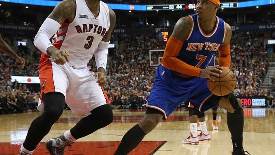 Ni por la mañana, ni por la tarde ni por la noche. Los Knicks, de nuevo sin Stoudemire y J. R. Smith, siguen sin levantar cabeza y ante los Raptors sumaron su quinta derrota consecutiva (118-108), la número 25 de la temporada, en un duelo que dominaron los de Toronto desde el primer cuarto. El esfuerzo de Carmelo Anthony (28 puntos), que aseguró estar mejor de sus problemas físicos en la víspera del partido, y de José Manuel Calderón (15 puntos y 10 asistencias) fueron insuficientes ante el buen trabajo coral del equipo canadiense, que contó con seis jugadores en dobles dígitos, entre ellos Lou Williams y el venelozano Greivis Vásquez, desequilibrantes desde el banquillo con los 43 puntos y siete triples que anotaron entre ambos. Kyle Lowry, autor de 22 puntos y 9 asistencias, fue el otro gran estandarte de los Raptors ante el conjunto de Nueva York, el peor del Este tras Philadelphia con cinco victorias. Mientras, Toronto sigue sin acusar demasiado la baja del escolta DeMar DeRozan y se mantiene como el mejor equipo de la conferencia y uno de los líderes de la liga, con 22 victorias y seis derrotas. La buena noticia para Derek Fisher, técnico de los de la Gran Manzana, es que pronto recuperará a Andrea Bargnani. El ala-pívot italiano podría empezar a entrenar con el resto del equipo esta semana y ayudar a una plantilla poco sobrada de talento y que ha mostrado escasa química hasta el momento. Por ahora, el famoso triángulo ofensivo sigue siendo un misterio por resolver para los Knickerbockers.