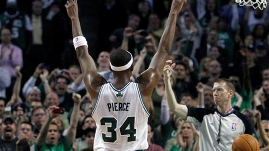 Paul Pierce anotó 28 puntos, incluidos 12 durante el alargue, para llegar a 20.000 en su carrera, en el duelo que los Celtics de Boston ganaron el miércoles con apuros por 105-102 a los Bucks de Milwaukee. Pierce añadió un robo crucial, cuando restaban 27 segundos del tiempo extra. Ray Allen totalizó 23 unidades por los Celtics (4-1), Rajon Rondo tuvo 17 puntos y 15 asistencias, mientras que Kevin Garnett anotó 13 y atrapó ocho rebotes. El australiano Andrew Bogut encabezó a los Bucks (1-4) con 21 puntos y 13 rebotes. Ersan Ilyasova y el argentino Carlos Delfino sumaron 15 unidades cada uno, mientras que Brandon Jennings sumó 13. Delfino acertó seis de 15 disparos en jugada y convirtió dos desde la línea, en una labor de 49:18 minutos, la cual incluyó además cuatro rebotes, siete asistencias y una falta.