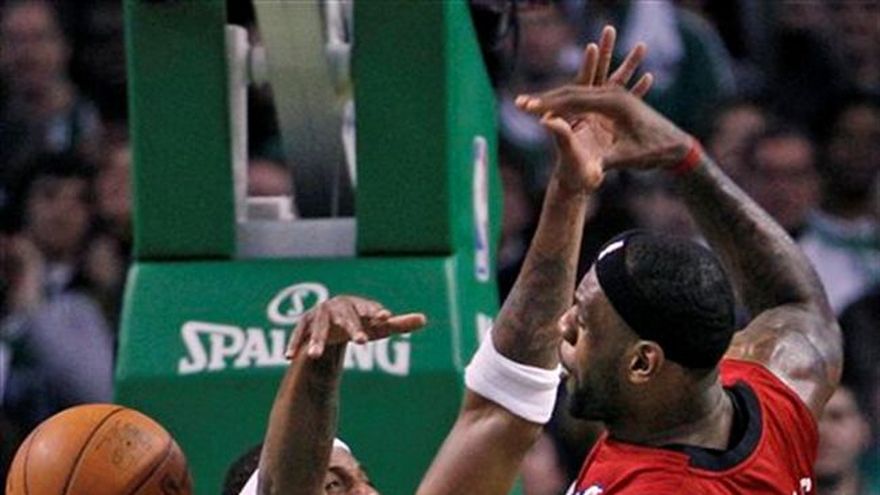 Rajon Rondo tuvo una estupenda actuación al anotar 11 puntos, repartió 10 asistencias y obtuvo 10 rebotes y Boston derrotó el domingo por 85-82 al Heat de Miami para que los Celtics, campeones actuales de la Conferencia Este, se llevaran la serie de la temporada ante sus principales rivales. LeBron James anotó 22 puntos para Miami, que vio romperse una racha de ocho victorias en fila. Sin embargo, falló el primero de dos tiros libres cuando quedaban 13 segundos por jugarse y el Heat perdía por dos puntos. Después se lanzó hacia las gradas para bloquear el pase de reinicio del partido, pero lo lanzó directamente hacia donde estaba Ray Allen. Glen "Big Baby" Davis encestó sus dos tiros libres cuando quedaban 6,3 segundos por jugarse y Mike Miller falló un tiro de tres puntos en los últimos instantes que habrían provocado un empate y la disputa de un período adicional. Gracias a su victoria, los Celtics (39-14) tomaron de nuevo el liderato de la Conferencia arrebatándoselo a Miami (39-15) y se ganaron el criterio de desempate de jugar com0 locales en la postemporada.