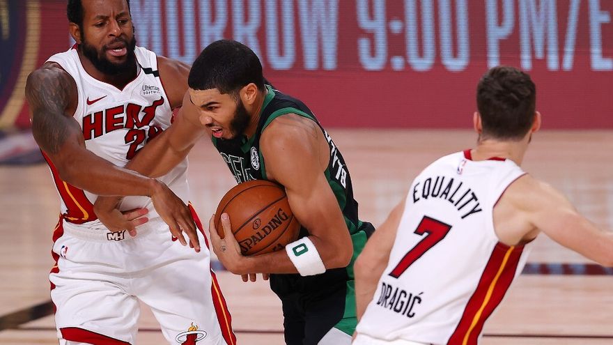 Tatum, con 31 puntos y 10 rebotes, y Jaylen Brown, con 28 y 8, fueron de nuevo las estrellas de Boston mientras que el base esloveno Goran Dragic brilló para Miami con 23 puntos.