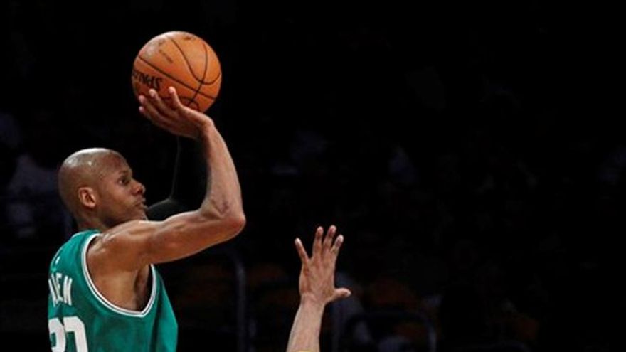 Los Celtics de Boston lograron empatar la serie de campeonato de la NBA gracias a Ray Allen que despedazó a los Lakers de Los Angeles con triples y Rajon Rondo con grandes actuaciones en otros campos. Allen encestó 27 de sus 32 puntos en el primer tiempo e impuso una nueva marca de triples al sumar ocho y Rondo completó un triple-doble para encaminar ambos a los Celtics a empatar la serie de campeonato de la NBA a una victoria por bando al derrotar el domingo por 103-94 a los Lakers. Allen impuso una marca en la serie de campeonato al acertar ocho triples durante un primer tiempo caracterizado por un gran esfuerzo para los Celtics. Rondo entonces se echó al equipo al hombro al bajar Allen de ritmo y anotó 19 puntos, capturó 12 rebotes y repartió 10 asistencias para su quinto partido de playoffs con dos dígitos en tres departamentos estadísticos. Además, le propinaron a los Lakers su primera derrota como locales de la postemporada. "Fue un esfuerzo de todo el equipo. Ray nos llevó durante el primer tiempo y en el segundo caímos en un pequeño bache pero nos mantuvimos firmes, conservamos el juego de conjunto y sacamos la victoria", dijo Rondo. Kobe Bryant anotó 21 puntos para Los Angeles aunque batalló con la acumulación de faltas y los Lakers pudieron dar alcance a los dinámicos escoltas de Boston. Los Lakers no perdían un partido de locales en playoffs desde las finales de la Conferencia Oeste del año pasado. Gasol anotó 25 puntos y recuperó ocho rebotes y Andrew Bynum contribuyó con 21 puntos y seis rebotes para los Lakers. El tercer partido de la serie se jugará el martes por la noche en Boston. Los equipos se repartieron la ventaja durante el período, pero un estupendo enceste de Rondo puso a los Celtics en ventaja de 91-90 cuando quedaban 3:21 minutos por jugarse. Fue una clásica jugada de Rondo, quien entró a toda velocidad para tomar un balón a la deriva y anotar después de que Gasol había logrado bloquear un tiro a la canasta. Kevin Garnett entonces encestó una canasta y después de recuperar el balón gracias a su hermética defensiva, Rondo tuvo otro enceste y lo celebró agitando el brazo ante un casi silencioso Staples Center de Los Angeles. Rondo se ha convertido probablemente en el arma más peligrosa de los celtics en estos playoffs, pero sus 10 puntos en el cuarto período parecen estar entre sus principales logros. Después de que los Lakers ganaron el primer partido con muchas faltas por 102-89, ambos equipos nuevamente batallaron con las acumulaciones de faltas. Garnett y Bryant nuevamente pasaron tiempo adicional en la banca, y Bryant sumó su quinta falta al principios del cuarto período. Garnett sólo anotó seis puntos y Paul Pierce nunca se enganchó en el partido al encestar apenas dos de 11 tiros a la canasta.