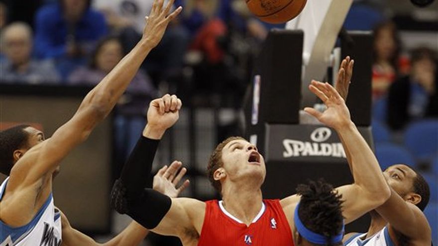 Blake Griffin hizo 19 puntos y capturó 13 rebotes, Caron Butler metió 17 unidades y los Clippers de Los Angeles vencieron el jueves 95-82 a los Timberwolves de Minnesota. Mo Williams encestó 14 puntos y repartió cinco asistencias en su regreso con los Clippers, que antes del partido iban 1½ juegos detrás de los Lakers en busca de la tercera preclasificación de la Conferencia Oeste y apenas 1/2 juego delante de Memphis por la cuarta. Michael Beasley metió 14 puntos y capturó 10 rebotes, mientras que el puertorriqueño J.J. Barea hizo 10 unidades y repartió 11 asistencias para los Timberwolves, que han perdido ocho partidos seguidos. Barea metió cuatro canastas en nueve intentos en los 31:03 minutos que estuvo sobre la cancha. Los Wolves no contaron con el estelar Kevin Love, que se perdió el partido debido a una conmoción cerebral moderada.
