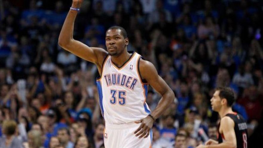 Kevin Durant anotó 43 puntos y Russell Westbrook tuvo 35 y ocho asistencias, para mantener el sábado al Thunder de Oklahoma City al tope de la Conferencia Oeste con una victoria de 115-110 sobre los Timberwolves de Minnesota. Durant anotó 16 en los últimos siete minutos por el Thunder (44-16), que llegó al partido con un juego de ventaja sobre los Spurs — pero empatados en la columna de juegos perdidos. Anthony Randolph tuvo 22 puntos y 11 rebotes y Michael Beasley anotó 26 para los Timberwolves, que perdieron su noveno consecutivo. Los Wolves están jugando sin su astro Kevin Love, que sufre de una contusión. El boricua José Juan barea