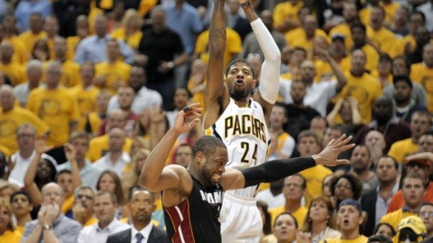 INDIANÁPOLIS (AP) -- Paul George comenzó a jugar a la desesperada, en busca de salvar la campaña de los Pacers. Su esfuerzo dio resultado. El versátil jugador de 24 años anotó 21 de sus 37 puntos en el último cuarto y se encargó casi en solitario de mantener con vida a Indiana, que superó el miércoles 93-90 al Heat de Miami para acercarse a 3-2 en la serie final de la Conferencia del Este. "Mi mensaje para todo el equipo es que debíamos entender que teníamos en verde la luz de nuestro semáforo", dijo el entrenador Frank Vogel. "Necesitamos ir, atacar, ser agresivos. Paul lo entendió, así lo hizo y llevó esto a un nivel de locura". En el sexto encuentro, previsto para el viernes en Miami, los Pacers buscarán empatar la serie. De lo contrario, quedarán eliminados. Hizo falta un esfuerzo titánico de George para que la serie continuara, pese a que LeBron James se metió muy pronto en problemas de faltas y anotó apenas siete puntos en 24 minutos y medio, la peor cifra de su carrera en playoffs. Sumó también dos rebotes y cuatro asistencias. Chris Bosh encabezó al Heat con 20 unidades, pero falló un triple que hubiera significado la ventaja en los últimos segundos, y el Heat regaló 17 balones. En rebotes, los Pacers superaron por 45-38 a los visitantes. Así, Miami vio al menos postergada su cuarta coronación seguida como monarca del Este. George acertó 12 de 19 tiros de campo en la segunda mitad, además de totalizar seis rebotes, seis robos, cinco triples y apenas tres balones perdidos en una actuación de 45 minutos. Indiana, que perdía por 50-41, remontó para colocar el marcador a su favor por 64-57, después de tres periodos. Luego, tuvo ventaja de incluso 11 unidades en el último cuarto. Los 21 puntos de George en el último cuarto fueron la mayor cantidad de cualquier jugador contra Miami en un periodo de un encuentro de playoffs. El récord anterior, de 20, fue impuesto por Michael Jordan en mayo de 1997. "Lo sentí, entramos en ritmo. Yo tenía que ser agresivo", dijo George. "Traté de salir y mostrarme agresivo, encontré huecos y me enraché". Pero una reacción de Miami en el último tramo puso la situación en 91-90 con 16 segundos por jugar. Los Pacers alcanzaron apenas a preservar la diferencia. Por los Pacers, el argentino Luis Scola jugó 16:46 minutos, en los que sumó seis puntos, cuatro rebotes, una asistencia y un par de faltas.