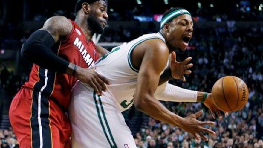 LeBron James y el Heat de Miami Heat escaparon de Boston con su victoria 23 consecutiva. Todo lo que queda ahora frente a ellos es la marca de la NBA para más triunfos seguidos. Cinco años después de que los Celtics cortaron la racha de 22 victorias consecutivas de Houston, James anotó la canasta del triunfo cuando quedaban 10,5 segundos por jugarse y llevó el lunes al Heat a vencer por 105-103 a Boston. Después de sobreponerse a la mayor desventaja que han enfrentado durante su cadena de triunfos, el único equipo que le queda al Heat por alcanzar es a los Lakers de Los Angeles de la temporada 1971-1972, quienes ganaron 33 enfrentamientos seguidos. "Significa muchísimo", dijo James. "Conozco la historia del juego. Estar ubicados en el segundo lugar en este momento ... Para nosotros estar ahí y haciéndolo de la manera que queremos hacerlo, significa muchísimo", subrayó. James encestó 37 puntos, repartió 12 asistencias y, por primera vez en 11 intentos en temporada regular, el Heat ganó en Boston a pesar de los 43 puntos de Jeff Green, una marca en su carrera. Los Celtics jugaron sin Kevin Garnett, quien estaba resfriado y tenía un esguince en el muslo izquierdo. Paul Pierce aportó 17 puntos, ocho rebotes y ocho asistencias para los Celtics. Sin embargo falló un tiro de tres puntos cuando quedaban tres segundos de partido que le hubiera dado el triunfo a Boston. En lugar de ello, los campeones defensores de la NBA ganaron un juego de temporada regular en Boston por primera vez en 11 intentos. "Éste fue un juego intenso, mucha historia entre los dos equipos", comentó el alero de Miami Shane Battier, quien jugó para los Rockets cuando lograron su cadena de 22 triunfos seguidos que terminó el 18 de marzo de 2008, y estuvo con el Heat cuando eliminaron a Boston de la postemporada en cada una de las dos últimas campañas. "No es que se trate de la intensidad de playoff ... no hay nada como los playoffs", agregó. Mario Chalmers anotó 21 unidades por Miami, que no ha perdido desde el 1 de febrero. "Es una oportunidad especial que tenemos con este grupo y uno no quiere darlo por sentado", dijo el entrenador en jefe Erik Spoelstra. "Uno quiere tratar cada día como una oportunidad especial para estar con este grupo, para compartir estos momentos juntos, pero, más importante, para acercarnos más a nuestra meta; y cada día que mejoremos nos coloca en una mejor posición en una cruzada donde nada está garantizado para nadie", señaló. El Heat no había ganado en Boston desde que se formó el Nuevo "Big Three", incluida una victoria en doble tiempo extra de los Celtics el 27 de enero, cuando Ray Allen regresó con su nuevo equipo. Esa fue la ocasión en que Rajon Rondo fue diagnosticado con un desgarre de ligamento anterior cruzado que fue el fin de la temporada para él. En esta ocasión, fue Garnett quien estuvo fuera de acción, aunque el entrenador Doc Rivers dijo que hubiera jugado si a la lesión de muslo no se hubiera sumado la gripe. "Creí que íbamos a ganar el juego antes del juego. Pensé que íbamos a ganar el juego durante el juego. Y pensé que debimos haber ganado el juego", dijo Rivers. "Les doy mi reconocimiento. Ellos realizaron algunas jugadas espectaculares", agregó. Boston tuvo ventaja de hasta 17 puntos en la primera mitad, pero estaban empatados a 103-103 cuando Miami tomó el balón con 33 segundos por jugar. James dribló agotando el tiempo para tirar antes de realizar un salto desde el ala derecha para tomar la ventaja. Green condujo el balón hasta la línea por Boston, pero fue enfrentado por Battier; el balón Salió de la cancha y, luego de revisar la repetición en video, los Celtics recibieron el balón con 7,1 segundos en el reloj. Courtney Lee dio un pase a Pierce para un tiro de tres puntos sin presión defensiva al frente, pero éste quedó lejos del aro y Dwyane Wade, quien anotó 16 puntos, tomó el rebote. En Phoenix, el argentino Luis Scola anotó todos sus 14 puntos en el cuarto período, incluido su segundo tiro de tres puntos, y los Suns de Phoenix vencieron por 99-76 a los Lakers de Los Ángeles, quienes no contaron con Kobe Bryant por segunda noche consecutiva. Steve Nash encestó 19 unidades contra su ex equipo, pero sólo acertó seis de 17 tiros de campo y los Lakers registraron en todo el juego una efectividad de apenas 33%. Scola acertó cinco de 11 tiros de campo y tres de cuatro tiros libres en 20:02 minutos. Registró nueve rebotes y dos asistencias. Los Suns superaron por 28-10 a los Lakers en el último cuarto para cortar una racha de cuatro derrotas consecutivas . Dwight Howard anotó 16 puntos y ganó 11 rebotes, pero únicamente encestó seis de 18 tiros de campo por los Lakers, quienes siguen sin el lesionado español Pau Gasol. Wesley Johnson agregó 14 unidades por los Suns, que vencieron a los Lakers en Phoenix por cuarta vez seguida. Goran Dragic registró 12 puntos y 10 asistencias por los Suns, quienes tuvieron seis jugadores con 10 puntos anotados o más. Jared Dudley encestó 13, Kendall Marshall 11 y Michael Beasley 10 por Phoenix. Bryant, quien había jugado en todos los encuentros esta temporada, se perdió su segundo seguido debido a un esguince en el tobillo izquierdo, lesión que sufrió la semana pasada contra Atlanta. Jugó el primer cuarto del juego siguiente en Indiana, pro se sentó el resto del mismo, luego se perdió ola victoria contra Sacramento la noche del domingo. Los Lakers perdieron apenas por segunda ocasión en sus últimos ocho juegos. Tienen marca de 11-4 desde la pausa por el Juego de Estrellas. En otros resultados de la jornada: Indiana ganó por 111-90 a Cleveland; Charlotte por 119-114 a Washington; Filadelfia por la mínima diferencia de 101-100 a Portland; Dallas por 127-113 a Atlanta; y Brooklyn por 119-82 a Detroit. Denver venció a Chicago por 119-118 en tiempo extra; Memphis a Minnesota por 92-77; Golden State a Nueva Orleáns por 93-72; y Nueva York a Utah por 90-83.