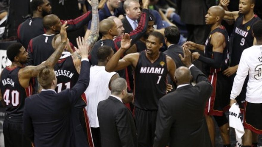 SAN ANTONIO, Texas, EE.UU. (AP) -- No hubo calambres ni problemas para LeBron James. Y contando con su superestrella hasta el final del encuentro esta vez, el Heat de Miami ganó el segundo juego de la serie, como siempre lo hace después de perder el primero. James anotó 35 puntos y bajó 10 rebotes en un poderoso regreso tras sufrir de calambres en el primer juego, y el Heat de Miami empató el domingo la serie final de la NBA con una victoria de 98-96 sobre los Spurs de San Antonio en el segundo partido. Chris Bosh consiguió el triple de la ventaja con 1:18 por jugar por el Heat, que ha ganado 13 partidos en fila luego de una derrota en la postemporada. Al igual que el año pasado, se recuperaron de una derrota ante los Spurs en el primer encuentro. "Tenemos un grupo muy competitivo y tuvimos dos días para compadecernos de cómo terminó el encuentro", dijo el coach del Heat, Erik Spoelstra. "Fue frustrante y doloroso pasar por eso durante dos días, y ahora tenemos que manejar la otra emoción". Bosh terminó con 18 tantos por el Heat, que recibe en casa el tercer encuentro de la serie la noche del martes. James jugó 36 minutos, encestando 14 de 22 disparos. Apenas metió uno de cuatro tiros con tres pérdidas de balón en un titubeante primer cuarto, luego encestó 11 de sus siguientes 13 tiros de campo. Tras dos días de fuertes críticas por no terminar el partido y recibir sugerencias de cómo evitar calambres, James cambió de tema. "Pudimos jugar duro", dijo James. "Creo que el hombre de arriba me protegerá. Solo intento colocarme a mí y mis compañeros en una posición para tener éxito". También tuvo un robo clave sobre Tony Parker en los minutos finales, jugando de manera dominante en ambos lados de la cancha, como si tuviera algo que probar. Cuando los críticos salen, James siempre los acalla rápidamente. Tuvo 11 puntos en el segundo cuarto, ayudando a Miami a borrar una desventaja tempranera de 11 puntos en ese periodo. El juego continuó con un margen escaso el resto del encuentro, y los Spurs no pudieron tomar control en el último cuarto, cuando Tony Parker y Tim Duncan se combinaron para fallar cuatro tiros libres en fila cuando gozaban de una delantera de dos puntos. Entonces James conectó un triple y un par de tiros libres, poniendo a Miami en posición para sacar el juego. Tony Parker terminó con 21 unidades y Tim Duncan tuvo 18 puntos y 15 rebotes por los Spurs, que habían ganado ocho partidos en casa por al menos 15 puntos. Por San Antonio, el argentino Emanuel Ginóbili terminó con 19 puntos y cuatro asistencias en 28 minutos, mientras que el brasileño Tiago Splitter consiguió dos tantos, seis rebotes y cinco asistencias en 19 minutos de acción. El encuentro se realizó en condiciones ideales al interior del AT&T Center, luego de la falla en el aire acondicionado en el primer encuentro de la serie. James fue el más afectado con las altas temperaturas el jueves, necesitando tratamiento a la mitad del último cuarto antes de dejar el encuentro de forma definitiva. Tuvo mucho tiempo para recuperarse con los dos días de descanso entre partidos. James personalmente borró una desventaja de 62-56 al anotar ocho puntos en menos de un minuto, y sus 14 tantos en el tercer periodo colocaron a Miami abajo apenas 78-77 de cara al último cuarto. "LeBron con el balón hizo un gran trabajo en su extremo de la cancha, y nosotros debimos ser realmente perfectos en el otro lado, y no lo fuimos", señaló el coach de los Spurs, Gregg Popovich. "No aprovechamos las situaciones. Tomamos malas decisiones". Tras el contundente final en el primer juego de la serie, los Spurs mantuvieron el paso al inicio del segundo partido, encestando 10 de sus primeros 15 tiros. Consiguieron ventaja de 26-16 luego de un remate de Duncan con 1:49 por jugar en el periodo, pero dejaron escapar la oportunidad de ampliar la ventaja al perder tres balones de manera consecutiva.
