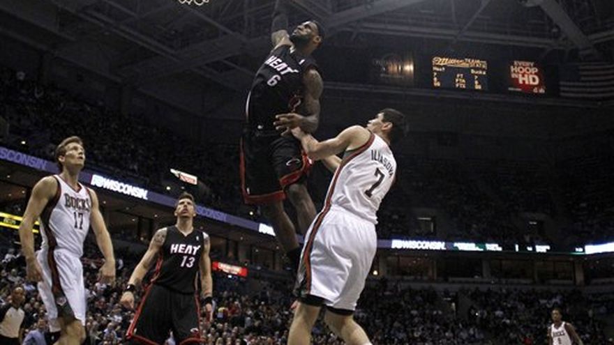 Dwyane Wade anotó el domingo 27 puntos, LeBron James se fue con 25 tantos, 11 rebotes y ocho asistencias y el Heat de Miami venció 90-78 al Magic de Orlando en su sexta victoria consecutiva para mantener la mejor foja de la liga. Mientras el ex presidente Bill Clinton observaba el partido con uno de los socios gerentes del Heat, Udonis Haslem anotó 10 tantos para el Heat, que dejaron su registro en 25-7. Tienen medio partido de ventaja sobre Chicago en la cima de la NBA y de la Conferencia Este. El margen final de 12 puntos fue el más reducido de la actual racha de victorias de Miami. Wade convirtió 13 de sus 23 tiros de campo, con lo que hiló diez partidos con 50% o más de efectividad. J.J. Redick anotó 17 puntos luego de ser agregado a último momento a los titulares cuando Jason Richardson quedó afuera por un dolor en el pecho.
