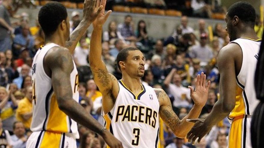 LeBron James anotó 32 puntos y atrapó 15 rebotes en su primer partido como Jugador Más Valioso y el Heat de Miami se impuso el domingo a los Pacers de Indiana por 95-86 en el primer partido de su serie de semifinales de la Conferencia Este. Dwyane Wade finalizó con 29 para el Heat, pese a batallar con su puntería. Chris Bosh añadió 13 puntos, pero tuvo que abandonar el partido a finales de la primera mitad con una lesión en el abdomen. El Heat superó a Indiana 25-16 en el cuarto período, con Wade y James combinándose para 22 de esos puntos. David West y Roy Hibbert anotaron 17 puntos cada uno y se combinaron para atrapar 23 rebotes para los Pacres, que además tuvieron 10 puntos de Darren Collinson y otros 10 de George Hill. El segundo partido será el martes en Miami.