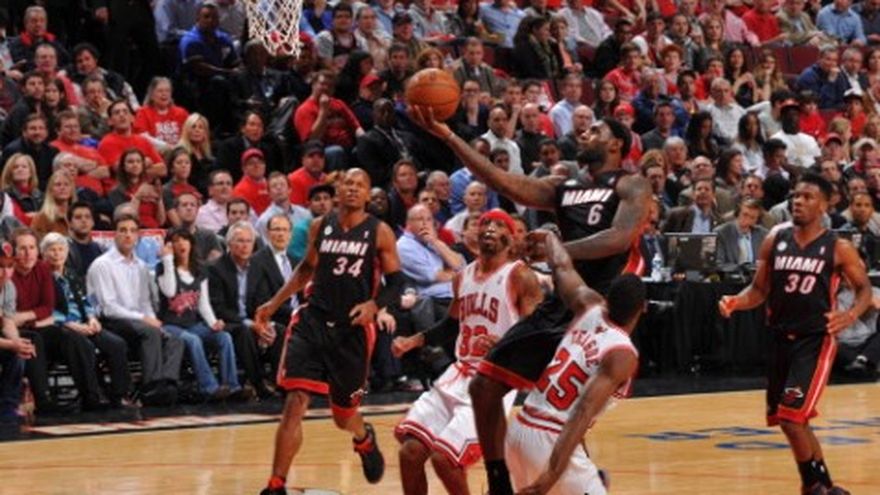 LeBron James anotó 27 puntos y el Heat de Miami estuvo cerca de igualar el record del equipo de menos puntos recibidos en un partido de playoffs al vencer el lunes 88-65 a unos desganados y mermados Bulls de Chicago. La victoria dejó a los campeones vigentes de la NBA con una ventaja 3-1 en su serie de semifinales de la Conferencia del Este. Los 65 puntos que el Heat permitió son apenas dos más que la menor cantidad que un equipo ha anotado frente a Miami en postemporada, y por mucho fue la peor actuación ofensiva de un equipo de Chicago. Nunca antes los Bulls habían terminado con menos de 69 tantos en un partido de playoffs. Tampoco los 10 en un cuarto. Pero registraron ambas cifras en una noche en la que fueron dominados en ambos extremos de la cancha. Miami se fue al descanso al mando por 11 puntos. La ventaja aumentó paulatinamente en el tercer cuarto, superando a Chicago por 17-9 en ese periodo. El Heat tratará de liquidar la serie en casa el miércoles. Cuesta creer que los Bulls pudieron ganar el primer partido tras lo visto en los tres siguientes. Miami vapuleó a Chicago en el segundo partido, con su victoria más desigual en playoffs. Los Bulls, en tanto, encajaron su peor derrota. James redondeó otro partido completo, al aportar ocho asistencias y siete rebotes. Chris Bosh terminó con 14 puntos, luego de encestar 20 y recuperar 19 rebotes en el tercer partido. El Heat volvió a salir airoso, pese a otra actuación discreta de Dwyane Wade, quien apenas anotó seis puntos. Norris Cole tampoco estuvo fino al encestar siete puntos, luego de partidos consecutivos con 18 puntos. Pero el Heat impuso su ley con una efectividad de 49% en tiros de campos, mientras que los Bulls se hundieron con la peor de su historia en postemporada con 25,7%. Chicago estuvo fatal desde larga distancia, acertando apenas dos de sus 17 intentos de triple. Los Bulls volvieron a echar de menos a Luol Deng, aún aquejado por una enfermedad. Tampoco jugó Kirk Hinrich (pantorrilla). Y así las cosas, el equipo que no se cansaba de encontrar la fórmula para ganar pese a sus limitaciones, simplemente ahora luce desinflado. Carlos Boozer anotó 14 puntos con 12 rebotes para su quinto doble-doble de la postemporada, pero sólo coló tres de sus 14 tiros de campo. Jimmy Butler añadió 12 y Joakim Noah recuperó nueve rebotes. Pero en líneas generales los Bulls tuvieron una noche para el olvido, sobre todo Nate Robinson. El armador falló sus 12 tiros y no sumó puntos.