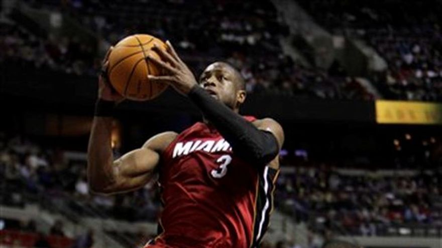 Dwyane Wade anotó 24 puntos y LeBron James agregó 16 unidades y 10 asistencias, ayudando el viernes al Heat de Miami a tomar en solitario el primer lugar de la Conferencia del Este con un triunfo de 106-92 sobre los Pistons de Detroit. Miami (39-14) ha ganado ocho partidos consecutivos desde que perdió cinco de seis el mes pasado. El Heat comenzó el encuentro empatado en la conferencia con los Celtics de Boston, que tuvieron día de descanso después de perder el jueves ante los Lakers de Los Angeles. Los Celtics reciben el domingo al Heat. Wade encestó impresionantemente un pase de James que tomó en el aire para clavar el balón en el primer cuarto y dar a su equipo una ventaja de 16-7. Aunque los Pistons estuvieron abajo por sólo cuatro unidades después de ese período, Miami amplió la ventaja con un ataque de 12-2 al inicio del segundo cuarto. Austin Daye encestó 18 puntos por Detroit. El dominicano-estadounidense Charlie Villanueva jugó 20:20 minutos, en los que encestó dos de nueve tiros de campo y uno de dos tiros libres para un total de cinco unidades. Tuvo cuatro rebotes y tres faltas personales.