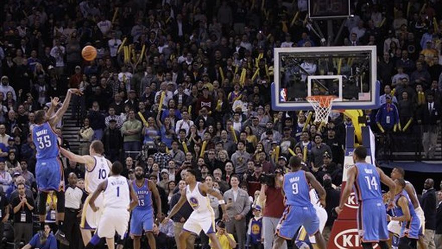 Kevin Durant dice que aún es muy temprano para considerar la posibilidad de una final entre su Thunder de Oklahoma City y el Heat de Miami. Para los demás, es una teoría difícil de dejar de lado. Los equipos comparten la mejor marca de la liga y ambos llegaron al receso por el Juego de Estrellas en gran nivel. Con Durant y Russell Westbrook de un lado y el trío sediento de revancha de LeBron James, Dwyane Wade y Chris Bosh del otro, esa final podría ser electrizante. Pero Chicago persigue de cerca a Miami en la Conferencia Este y varios equipos podrían presentarle batalla al Thunder en el Oeste. La segunda mitad de la temporada comienza el martes y la otra gran historia de estos días es el destino del pivote estelar Dwight Howard. Orlando debe decidir para el 15 de marzo si lo retendrá o lo transferirá. LeBron James y sus compañeros están ansiosos por una nueva oportunidad en la final. Kevin Durant y el Thunder van arrasando camino a la que sería su primera aparición. Sin embargo, Durant, elegido el domingo Jugador Más Valioso del Juego de Estrellas, dice que aún no se preocupa por eso. "Es demasiado pronto", afirmó. "Tratamos de ir un partido a la vez, día a día. Sé que en Oklahoma City ansiamos mejorar todos los días y vamos a ver qué pasa". Si el Juego de Estrellas sirve de muestra, la posible final de Heat y Thunder sería genial. Durant y Westbrook ayudaron a que el Oeste tomara una gran ventaja. James y Dwyane Wade llevaron al Este a una remontada que estuvo a punto de ser victoria, si LeBron no hubiera perdido una pelota en los segundos finales. El Oeste ganó por 152-149. En junio pasado, James sufrió similares decepciones al final de los partidos en la final que Miami perdió contra Dallas pese a la fanfarria generada en la primera temporada de sus tres astros juntos. Prometió mejorar y jugar más relajado esta campaña: así llegó al partido de Estrellas como el favorito al JMV tras una gran primera mitad de temporada. "Aún queda mucha temporada. Estoy en el camino correcto, de nuevo juego al básquetbol como yo sé, se trata de divertirse al más alto nivel", dijo James. "Lo mejor de esta temporada es que estamos jugando bien. Nuestro equipo siente que somos uno, en especial con la experiencia del año pasado, así que vamos a tratar de seguir mejorando todos los días". Miami y Oklahoma City comparten la mejor marca de la NBA con 27 victorias y siete derrotas. El Heat lleva ocho triunfos seguidos, todos en forma aplastante. El Thunder lleva cinco y una foja de local de 15-1. La elite de la liga se fue de Orlando el lunes tras el Juego de Estrellas. Howard sabrá pronto si él también dejará la ciudad donde es la columna vertebral del Magic. El equipo debe decidir si acepta su pedido de transferencia o lo retiene hasta el fin de la temporada, con lo que correrá el riesgo de perderlo como jugador libre en julio. El Magic tiene la cuarta mejor foja del Este y a veces juega como un potencial candidato. Pero, con o sin Howard, Orlando está lejos de Miami y Chicago, al igual que el resto de la Conferencia.