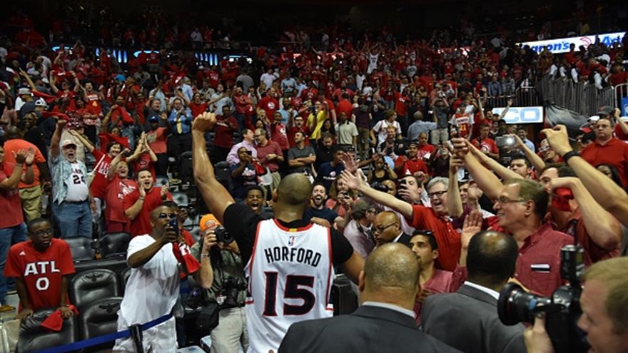 Horford robó el balón al brasileño Nené, que se desplomó. Sin rival enfrente, el pivote de los Hawks encestó la canasta del gane.