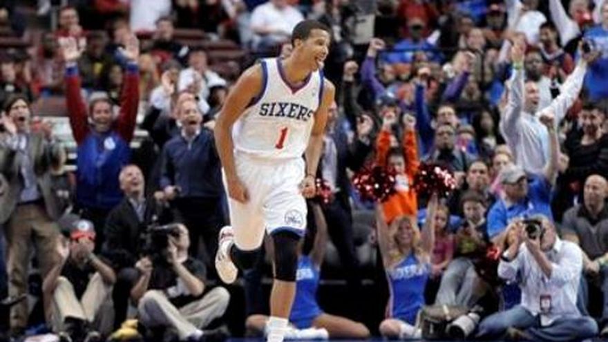 Michael Carter-Williams recibió la ovación de Allen Iverson desde su suite y causó buena impresión a LeBron James. Un muy buen inicio para MCW. Pero aún mejor para los 76ers. Carter-Williams tuvo un debut para el recuerdo, usando 22 puntos, 12 asistencias y nueve robos de balón para conducir el miércoles a los 76ers de Filadelfia a una victoria por 114-110 sobre el Heat de Miami. El novato proveniente de la Universidad de Syracuse estuvo cerca de opacar a Iverson en una noche en que Filadelfia festejó su espectacular carrera. "Uno puede ver lo que él (Carter-Williams) es capaz de aportar en un partido importante", dijo el entrenador novato de los 76ers, Brett Brown. MCW fue el más valioso del último cuarto, sumando dos robos de balón más, presionando a James dentro del área y sellando el triunfo desde la línea de los tiros libres. Carter-Williams además acertó cuatro disparos de tres puntos, aportó siete rebotes y sus nueve robos de balón impusieron una marca para la NBA para un debutante. "No puedo imaginar una mejor manera de iniciar una carrera en la NBA", lo elogió LeBron James. Spencer Hawes anotó 24 puntos y dio la ventaja definitiva a los 76ers con un tiro de tres puntos, luego se coló hasta la cesta para poner adelante a su equipo por 109-108 con 2:01 minutos por jugar. "Todo funcionó a la perfección esta noche", dijo Carter-Williams. "Si logramos jugar unidos consistentemente, seremos un muy buen equipo". Los integrantes del equipo podrían ser los únicos que creen eso. Mientras la temporada de la NBA daba inicio, la predicción en Las Vegas para el total de triunfos de los 76ers este año se encuentra en 16,5, la más baja para cualquier equipo de la liga. Pero frente a los bicampeones Heat, a nadie de Filadelfia le importó. James falló cinco de seis disparos en el último cuarto, perdiendo el balón a media cancha en una conducción y luego fallando un disparo de 1,8 metros (seis pies) en la siguiente posesión. Shane Battier erró siete intentos de triple en el partido y el Heat no encestó 10 tiros en el último periodo -después de anotar 45 puntos en el tercero. El Heat necesitaba todos esos puntos para volver al partido después de que los Sixers dominaron desde el inicio, encestando sus primeros 11 tiros de campo y logrando amplias ventajas de 19-0 y de 26-4, poniendo en evidencia a los campeones defensores una noche después de que recibieron sus anillos. James terminó con 25 puntos y 13 asistencias y Chris Bosh aportó 22 tantos por Miami. Dwyane Wade no jugó por presentar rodillas doloridas. El entrenador Erik Spoelstra dijo que deseaba dar a Wade un día extra para recuperarse dado que el Heat jugó en noches consecutivas. Wade anotó 13 puntos por el Heat en su victoria de 107-95 sobre los Bulls de Chicago el martes. En el resto de la jornada, los Cavaliers vencieron 98-94 a los Nets, Raptors 93-87 a Celtics, Pistons 113-102 a Wizards, Knicks 90-83 a Bucks, Rockets 96-83 a Bobcats, Timberwolves 120-115 a Magic, Pacers 95-90 a Pelicans, Mavericks 118-109 a Hawks, Spurs 101-94 a Grizzlies, Thunder 101-98 a Jazz, Suns 104-91 a Trail Blazers, Kings 90-88 a Nuggets, y Warriors 125-94 a Lakers.