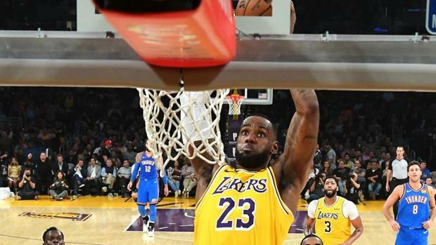 LeBron James se convirtió en el primer jugador en la historia de la NBA en registrar un triple-doble contra todos los equipos de la liga y los Lakers de Los Ángeles superaron 112-107 a los Thunder de Oklahoma City.