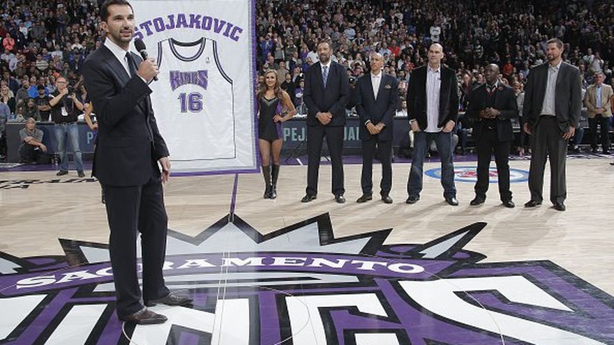 La camiseta con el número 16 de Peja Stojakovic ya cuelga en lo alto del Sleep Train Arena de Sacramento. La franquicia californiana homenajeó anoche al ex jugador serbio en una emotiva ceremonia en la que no faltaron sus ex compañeros Vlade Divac, Doug Christie, Brad Miller, Scott Pollard y Bobby Jackson En sus ocho temporadas como jugador de los Kings, Stojakovic promedió más de 18 puntos por encuentro. La leyenda de los Kings destacó como tirador y consiguió ganar el concurso de triples en 2002 y en 2003. El 24 de enero de 2011, fichó por Dallas Mavericks.3 De pasar a ser uno de los baloncestistas mejor pagados del mundo (más de 12 millones de dólares anuales la temporada anterior con los Raptors), Stojaković firmó por el salario mínimo establecido por el convenio colectivo vigente, de poco más de 400.000 dólares al año. Rechazando las ofertas multimillonarias de los equipos de su país de adopción, Grecia, el Olympiacos y el Panathinaikos, Stojaković firmó por una cantidad bajísima, lo que se interpretó como una señal de compromiso por lograr el tan ansiado anillo de campeón NBA. El 12 de junio de 2011, tres días después de cumplir los 34 años de edad y tras doce temporadas completas en la NBA, Stojaković logró por fin proclamarse Campeón de la NBA, obteniendo el ansiado anillo ante unos Miami Heat liderados por los All-Star LeBron James, Dwyane Wade y Chris Bosh. En diciembre de 2011 anuncia su retirada como profesional, debido principalmente a las lesiones, ya que arrastraba problemas en la espalda y el cuello. Stojaković fue además el jugador más joven de la Historia de la NBA en alcanzar los 1500 triples convertidos en Temporada Regular y el único en alcanzarlos siendo menor de treinta años. Es además, el segundo jugador de la historia de la temporada regular de la NBA en triples anotados por partido, con un ratio de 2,18 triples por partido (1760 triples anotados en 804 partidos), sólo superado por Ray Allen (2,58 triples por partido) y por delante de históricos como Reggie Miller (1,84 triples por partido). Si se suman todos los triples anotados en toda su carrera, desde su debut en el Estrella Roja (1992) hasta la actualidad (2011), incluyendo 2 temporadas en la Liga Yugosl
