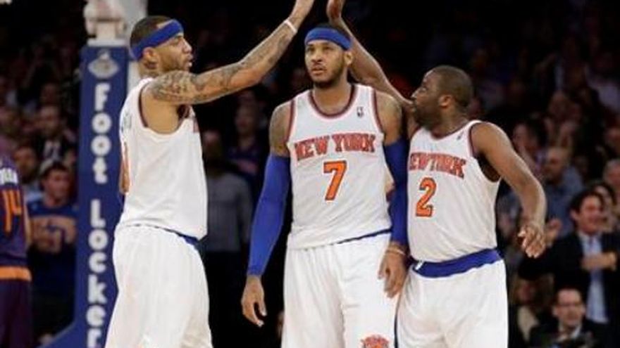 Otra victoria para los Knicks, en otro partido que probablemente hubieran perdido el mes pasado. Respaldado con 29 puntos y 16 rebotes de Carmelo Anthony, Nueva York cumplió una brillante actuación defensiva en el tiempo extra para llevarse el lunes la victoria 98-96 ante los Suns de Phoenix. Fue la quinta victoria seguida de los Knicks. Phoenix no pudo colar un solo tiro de campo en el alargue. Anthony anotó cuatro de los seis puntos de los Knicks en la prórroga, período en el que los Suns fallaron sus siete tiros al aro. Los cuatro puntos de Phoenix en el tiempo adicional fueron producto de cuatro tiros libres. "Creo que como equipo somos distintos en el aspecto mental", dijo Anthony. "Creo que comenzamos ahora a creer que cuando no nos rendimos tenemos todavía posibilidades de ganar el partido". Raymond Felton añadió 19 puntos para los Knicks (15-22), que ahora comparten con Brooklyn el octavo lugar de la Conferencia del Este. Los Knicks, que jugaron su cuarto encuentro seguido sin Tyson Chandler por una bronquitis, vencieron en Nueva York a un equipo de la Conferencia del Oeste por primera vez en siete oportunidades, y mejoraron a una foja de 7-12 en el Madison Square Garden. Pese a su pésimo arranque de la campaña, podrían continuar su ascenso en enero, pues el viernes abren una serie de ocho duelos como locales. "El partido no concluye sino hasta que el reloj está en cero", dijo el alero Kenyon Martin. "Perdimos algunos partidos apretados al comienzo, así que aprendimos de los errores... y tratamos de continuar con lo que estamos haciendo". Goran Dragic fue el mejor por Phoenix con 28 puntos y ocho rebotes. El brasileño Leandro Barbosa añadió 21 puntos. También el lunes, Tony Parker coronó una noche en la que encestó 27 puntos con varias canastas en los últimos minutos y los Spurs de San Antonio hilvanaron su quinta victoria seguida al vencer 101-95 a los Pelicans de Nueva Orleáns. El argentino Manu Ginóbili anotó 14 puntos y consiguió dos rebotes para los Spurs. Además, Tim Duncan marcó 18 puntos antes de salir del partido por acumulación de faltas a 6:02 del final. Duncan se quedó parado durante varios segundos ante la cesta de Nueva Orleáns, con un gesto de sorpresa. Al parecer no entendía cómo pudieron expulsarlo cuando restaba medio cuarto de un duelo inesperadamente apretado entre los líderes de la Conferencia del oeste y los alicaídos Pelicans. Para su fortuna, Parker resolvió el crucigrama. "Entré en modalidad de ataque", dijo Parker. "Cuando vi que expulsaron a Tim Duncan, sabía que yo debía ser agresivo y que debía producir o hacer que mis compañeros produjeran". Nueva Orleáns ha perdido seis partidos en fila desde que Ryan Anderson, su máximo anotador, se lesionó. Otro que no pudo jugar fue el armador Jrue Holiday. Anthony Davis fue el mejor por los Pelicans con 22 puntos y 11 rebotes. En otros partidos, los Wizards de Washington derrotaron 102-88 a los Bulls, con 19 puntos del brasileño Nené, para cortar una racha de cinco triunfos seguidos de Chicago; los Raptors de Toronto arrollaron 116-94 a los Bucks de Milwaukee, que sufrieron su sexta derrota consecutiva; los Rockets de Houston doblegaron 104-92 a los Celtics de Boston, que han perdido nueve encuentros consecutivos; los Mavericks de Dallas vencieron 107-88 al Magic de Orlando, cuya racha de tropiezos al hilo es de ocho, y el Jazz de Utah se impuso 118-103 a los Nuggets de Denver, con 34 puntos de Alec Burks.