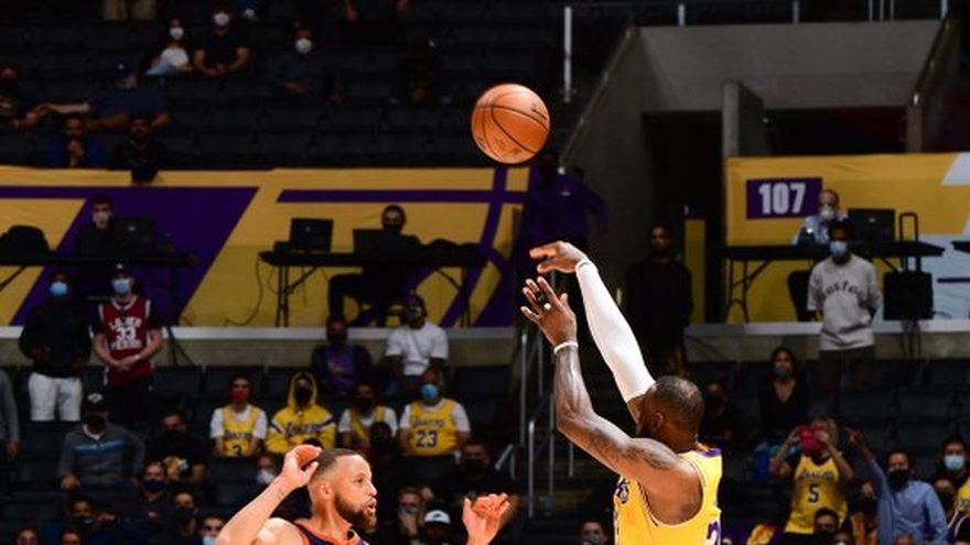 El alero de los Lakers devolvió el golpe clavando el triple decisivo a 58 segundos del final. Muy alejado de la línea de tres, y con Curry enfrente, James tuvo que lanzar en el último segundo de posesión y su acierto colocoó a los Lakers por delante 103-100.