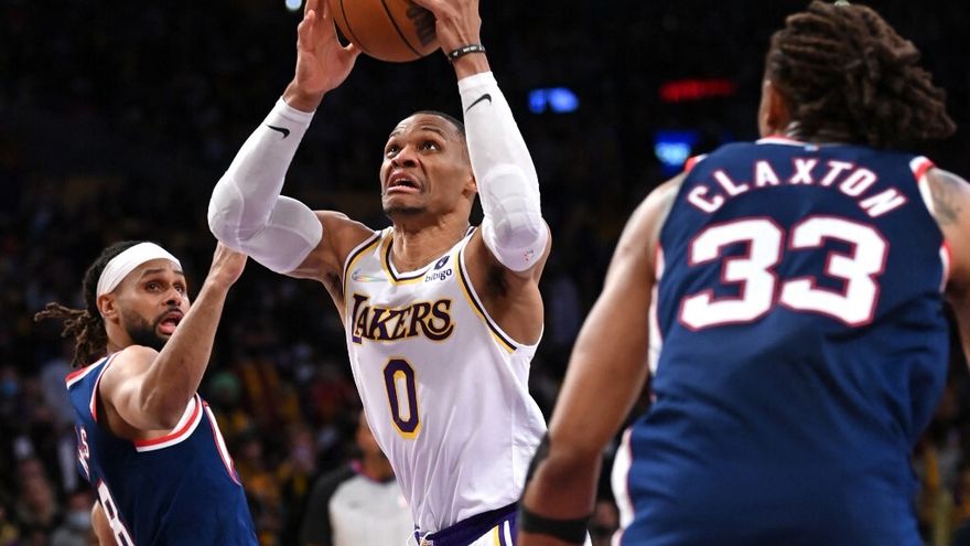 Harden aguó las esperanzas angelinas al asistir a Nic Claxton para un espectacular 'alley oop' sobre LeBron y, tras un fallo en una volcada de Russell Westbrook, la 'Barba' sentenció el juego con dos tiros libres.