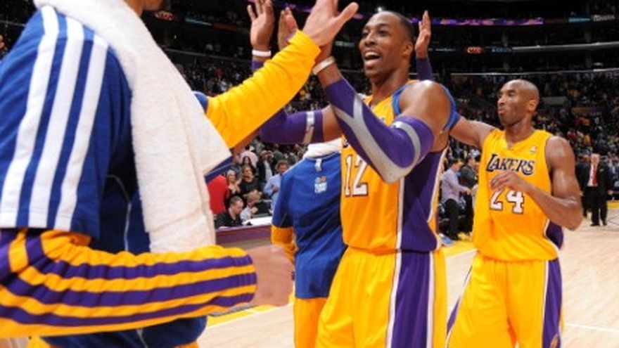 Dwight Howard anotó 24 puntos y Kobe Bryant registró 14 unidades y 11 asistencias en otra actuación en la que dio prioridad a la realización de pases, con lo que los Lakers de Los Ángeles vencieron el martes por 111-106 a los Hornets de Nueva Orleans, para su primera racha de tres triunfos seguidos en cinco semanas. Earl Clark tuvo 20 puntos y 12 rebotes por los Lakers, cuya ventaja de 18 unidades -cuando restaban cinco minutos y medio de juego- se redujeron a un marcador de 102-101 con dos minutos por jugar antes de que Clark y Steve Nash realizaran encestes cruciales para asegurar la novena victoria consecutiva de Los Ángeles sobre Nueva Orleans. Eric Gordon anotó 18 de sus 25 unidades en la primera mitad por los Hornets, quienes estaban terminados antes de conseguir un ataque de 16-2 en un electrizante lapso de dos minutos y medio. Nueva Orleans se acercó a un punto con un enceste del venezolano Greivis Vásquez, pero Clark logró un enceste a una mano y Nash uno de tres puntos con 1:21 minutos en el reloj. Vásquez anotó 15 puntos en 32:36 minutos. Acertó siete de 16 tiros de campo y de 1-1 en tiros libres. Registró cinco rebotes y 15 asistencias. Steve Nash registró 12 puntos y cinco asistencias, mientras que Antawn Jamison encestó 16 unidades. El español Pau Gasol —cuatro veces participante en el Juego de Estrellas— tuvo siete puntos, siete rebotes y siete asistencias como reserva en el último juego en casa de los Lakers antes de una gira de siete encuentros, su más larga en la temporada, mientras la entrega de Premios Grammy (a lo mejor de la música) se apodera del Staples Center. Ryan Anderson anotó 11 de sus 16 puntos en el cuarto período por los Hornets, quienes habían ganado ocho de sus últimos 12 juegos, incluida una victoria impresionante en Memphis dos noches antes al inicio de su gira de cinco juegos. Anderson, Vásquez y Robin López encabezaron el ataque impresionante que se quedó corto por poco, con López terminando con 16 unidades y nueve tableros. El novato Anthony Davis encestó 18 puntos por los Hornets, quienes no han derrotado a los Lakers en el Staples Center desde enero de 2009. "Aun cuando estuvimos abajo por 18, debimos ganar este juego", dijo Vásquez. "Es duro perder así, pero creo que luchamos. Simplemente no podemos estar abajo por 18. No podemos permitirnos eso. Tenemos que apretar desde el inicio. Somos suficientemente buenos para derrotar a cualquiera simplemente si jugamos con energía. Si no jugamos con energía, tendremos una larga noche", añadió. Steve Blake registró dos puntos y cuatro asistencias en su primera aparición con los Lakers desde el 11 de noviembre. Hasta que ocurrió el frenético final que casi altera lo conseguido por los Lakers en tres cuartos sólidos, Bryant alcanzó nuevas alturas en su readecuado papel de armador de Los Angeles, logrando hasta 10 asistencias en tres juegos seguidos por apenas quinta ocasión en su carrera y primera ocasión en cuatro años. El quinto mejor anotador en la historia de la NBA tuvo 39 asistencias en los últimos tres juegos de los Lakers, el total más grande en tres juegos en sus 17 años de carrera. "Está funcionando muy bien", dijo Bryant. "Es muy fácil para mí observar sobre la defensa y saber por dónde vienen, alinear a mis chicos de la manera correcta y simplemente destrozarlos", agregó. Bryant ganó además ocho rebotes, quedándose corto de un triple doble por tercer juego consecutivo. Dos días después de vencer a Oklahoma City de una forma impresionante, los Lakers regresaron a su forma mejorada en la primera mitad, impidiendo anotar a los Hornets durante un lapso de 7:41 minutos que abarcó los dos primeros cuartos en los que anotaron 17 puntos sin respuesta. Nueva Orleáns ayudó, fallando varios tiros abiertos, pero Los Angeles utilizó un mejor manejo de balón y un juego ofensivo alerta de Howard, quien incluso encestó cinco de sus seis tiros libres en la primera mitad, nada malo para alguien con un 49,5% de efectividad desde la línea. "Estamos haciendo un buen trabajo al evitar ser egoístas y al hacer todo lo que podamos para ayudar a que gane el equipo", comentó Howard. "Nos están funcionando las cosas. Nuestra ofensiva es mucho más fina, y en la defensa realmente estamos responsabilizándonos todos". Suena simple, pero los Lakers rara vez se han visto tan bien en su compleja temporada. Los Ángeles tuvo otro ataque de 15-2 antes de que terminara la primera mitad. Gordon mantuvo a los Hornets cerca con cinco tiros de tres puntos, pero sus compañeros acertaron en total 10 de 36. Blake había estado fuera de acción en los últimos 37 juegos de los Lakers debido a una lesión abdominal que requirió cirugía y por problemas de ingle, pero el entrenador en jefe Mike D"Antoni colocó inmediatamente al veterano base de nuevo en la rotación como reserva de Nash. En Michigan, Brandon Jennings anotó 20 de sus 30 puntos en el tercer cuarto, lo que impulsó a los Bucks de Milwaukee a la victoria por 117-90 sobre los Pistons de Detroit. Mike Dunleavy encestó 17 puntos y Monta Ellis aportó 14 para los Bucks, que llegaron a despegarse hasta 29 unidades. El novato Andre Drummond registró 18 puntos y 18 rebotes para Detroit, mientras que Greg Monroe anotó 14 tantos y Charlie Villanueva sumó dos puntos en 13:15 minutos jugados. Drummond se convirtió en el segundo adolescente en tener una producción de 18 y 18 desde la temporada 1985-1986, sumándose a Dwight Howard. Los Pistons sacaron ventaja de 15 puntos al final del primer cuarto, pero en los siguientes 25 minutos anotaron 40 puntos por 78 de los Bucks. En otros resultados de la jornada, Klay Thompson anotó 32 puntos para imponer una marca personal y los Warriors de Golden State vencieron a los Cavaliers de Cleveland por 108-95. Por otro lado, LaMarcus Aldridge encestó justo cuando sonaba el final del juego y los Trail Blazers de Portland se recuperaron de una desventaja de 21 puntos en el 