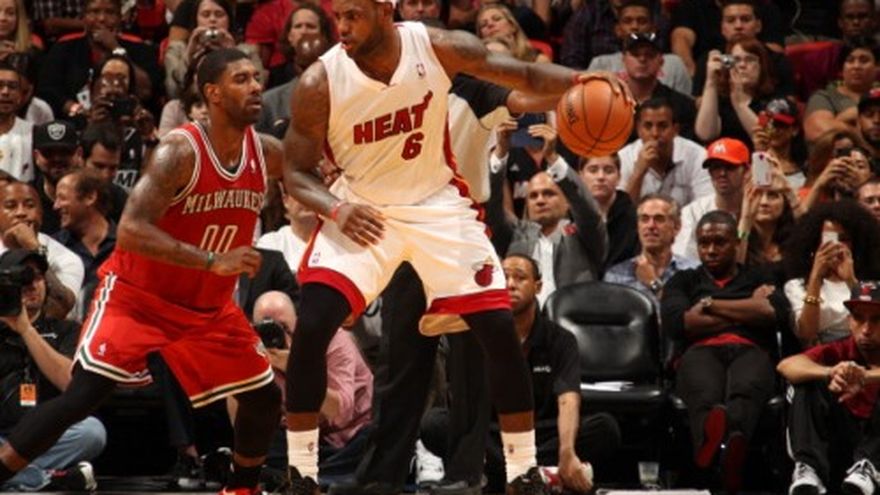El desempeño a la defensiva estuvo cerca de los estándares del Heat. Pero LeBron James hizo difícil notar cualquier aspecto que no se relacionara con el ataque. James aportó 33 puntos y se dio el lujo de descansar durante todo el cuarto periodo del partido que Miami ganó el martes por una paliza de 118-95 a los Bucks de Milwaukee. El astro acertó 13 de 21 disparos, incluida una oleada de triples en el tercer cuarto. Sumó 17 puntos en ese periodo, su mejor desempeño en 12 minutos en lo que va de la temporada y un indicador de que está dejando atrás los problemas de espalda que lo habían aquejado en las dos primeras semanas de la campaña. "Estoy mejorando", dijo James. "Me siento mucho mejor. Todavía me duele un poco... He trabajado mucho para estar al 100%, pero mejoro cada día y eso es bueno". Michael Beasley contribuyó a la causa de Miami como reservista, con 19 puntos, mientras que Mario Chalmers acumuló 15 unidades y siete asistencias. El Heat se apuntó su victoria por mayor margen en la temporada, por encima de los 12 puntos de ventaja que logró sobre Chicago en el encuentro inaugural. Chris Bosh se sumó a la fiesta por Miami (5-3), con 10 puntos, al acertar tres de sus cinco disparos. John Henson y Gary Neal anotaron 18 puntos cada uno, mientras que Giannis Antetokounmpo totalizó 11 por Milwaukee (2-4). Los tres jugadores lograron esas cifras como reservistas. Caron Butler fue el único titular de los Bucks (2-4) que aportó cifras de dos dígitos, al anotar 10 puntos. Miami jugó sin Udonis Haslem, lastimado de la espalda, y sin Ray Allen, enfermo. Shane Battier ocupó el lugar de Haslem. "No fue algo perfecto", dijo el entrenador del Heat, Erik Spoelstra, cuyo equipo venía de una derrota en el último segundo ante Boston, en el encuentro del sábado. "Hay todavía algunos aspectos en los que definitivamente necesitamos mejorar, en términos de detalles y disciplina. Pero al menos el esfuerzo fue mejor, la disposición fue adecuada desde el comienzo... los chicos estuvieron más concentrados y mostraron ese espíritu competitivo". También el martes, el alemán Dirk Nowitzki sumó 19 puntos para rebasar a Jerry West en la lista de los máximos anotadores en la historia de la NBA, y los Mavericks de Dallas doblegaron 105-95 a los Wizards de Washington. Nowitzki acertó triples consecutivos en las postrimerías del tercer periodo. Su segundo enceste de tres puntos lo colocó en 25.194, dos más que West, para desplazarlo del 16to lugar en la lista histórica. "Jerry West es el jugador. Es el logotipo (de la NBA) y eso lo dice todo", dijo Nowitzki. "Esta carrera ha sido grandiosa". Trevor Ariza encabezó a los Wizards con 27 puntos, incluidos cinco encestes triples. Añadió siete rebotes y cuatro robos. También por Washington, el brasileño Nené anotó 14 puntos, capturó siete rebotes, repartió tres asistencias y cometió tres faltas, en una actuación de 33:11 minutos. Monta Ellis comenzó lento en tiros de campo, antes de anotar 10 puntos en el último cuarto, para que los Mavs mejoraran a una foja de 4-0 como locales en lo que va de la campaña. Ellis igualó a Nowitzki con 19 unidades. En otros partidos, los Lakers de Los Ángeles apalearon 116-95 a los Pelicans de Nueva Orleáns, y los Warriors de Golden State hicieron lo propio con los Pistons de Detroit, por 113-95.