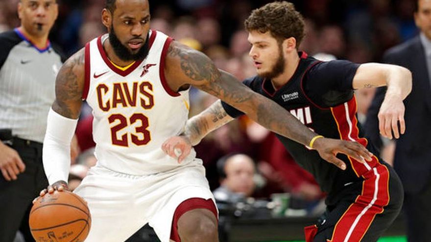LeBron anotó 24 puntos, Jae Crowder encestó un triple con 1:21 minutos por jugar y los Cavaliers comenzaron esta jornada un largo tramo sin el lesionado All-Star Kevin Love para frenar al Heat.