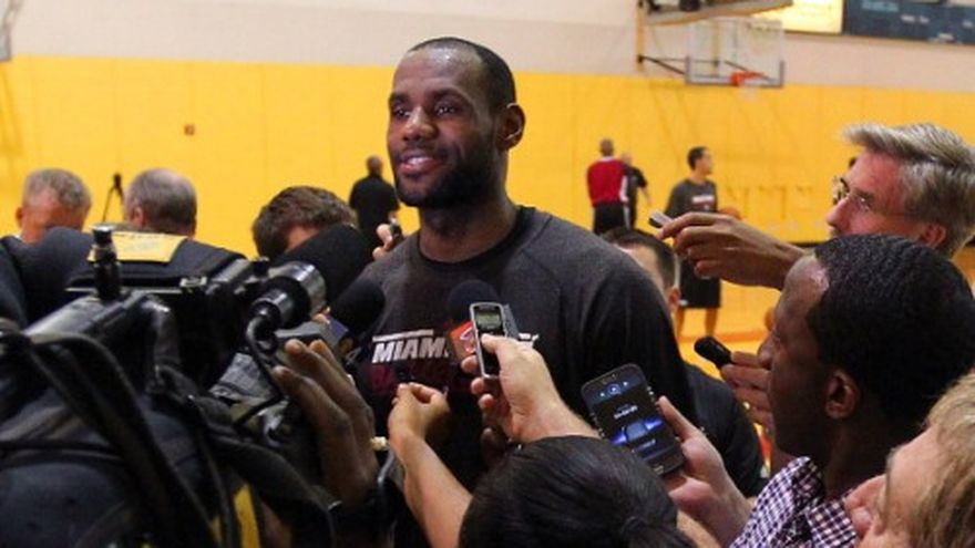 LeBron James afirmó que es un honor unirse a un selecto quinteto de basquetbolistas que han sido elegidos como jugador más valioso de la NBA en cuatro ocasiones. El anuncio oficial será el domingo, un día antes que el Heat de Miami inicie las semifinales de la Conferencia del Este. De esa manera, James se unirá a Kareem Abdul-Jabbar, Michael Jordan, Bill Russell y Wilt Chamberlain como los únicos jugadores que reciben el galardón al menos cuatro veces. "Soy un historiador del básquetbol", dijo. "...Sé que ellos allanaron el camino y para el resto de nosotros". Los otros premios de James fueron en 2009, 2010 y 2012. Russell es el único otro jugador que recibió el galardón cuatro veces en cinco años, y Abdul-Jabbar es el único otro que lo ganó en dos ocasiones consecutivas. A sus 28 años, James no descansa sobre sus laureles. Es por eso que se quedó a seguir practicando sus tiros con sus compañeros Ray Allen y Mario Chalmers después de la práctica del sábado, mientras los otros jugadores del Heat se habían dirigido ya a las regaderas. "No conozco mi límite", dijo James. "No dejo de tratar de mejorar mi nivel de juego —como hoy, al estar aquí con Rio y Ray, los últimos en abandonar la cancha. Quiero seguir maximizando lo que tengo". James indicó que su meta principal es ayudar al Heat a ganar su segundo título consecutivo de la NBA. El Heat tiene programado iniciar su serie de semifinales de conferencia en los playoffs de la NBA el lunes en casa frente al ganador de la serie entre Chicago y Brooklyn, que el sábado se define en un decisivo séptimo partido. Miami ha estado a la espera desde el domingo, cuando completaron una barrida en la serie ante Milwaukee. El tema más discutido durante ese periodo ha sido la condición de la lastimada rodilla derecha de Dwayne Wade, y si bien se espera que juegue, dijo que probablemente tendrá que lidiar con el malestar por el resto de los playoffs. Jordan tenía 35 años cuando fue elegido como el más valioso de la liga por última vez, en 1998. Abdul-Jabbar ganó el premio por última vez a sus 33, y Chamberlain y Russell a sus 31. "¿A quién no le encantaría seguir jugando en un nivel de NBA a mediados de sus 30 años?", dijo James. "A todos nos gustaría eso. La salud siempre es lo principal".