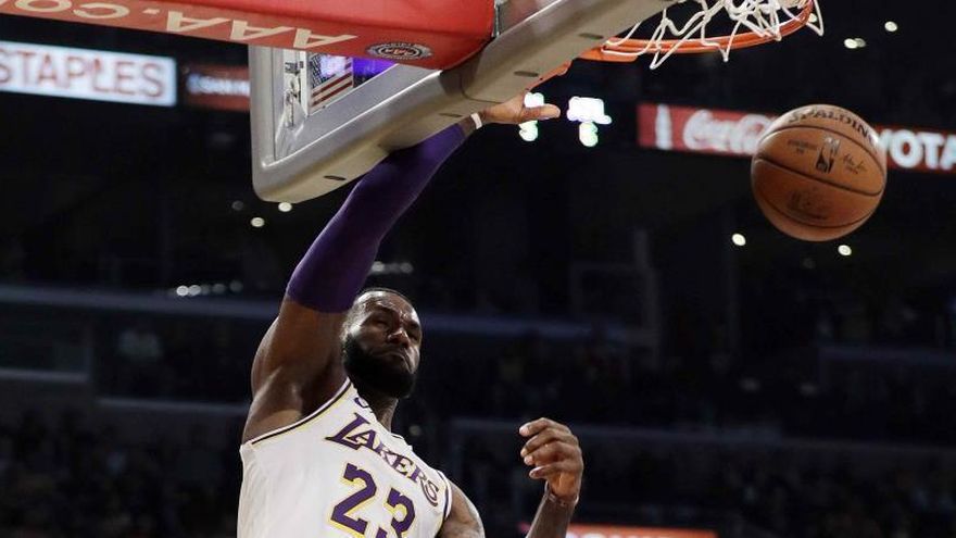El alero estrella LeBron James aportó 26 puntos, incluido el mate que consiguió en los últimos segundos del tiempo reglamentario de partido que Los Angeles Lakers ganaron por 107-106 a los Hawks de Atlanta.