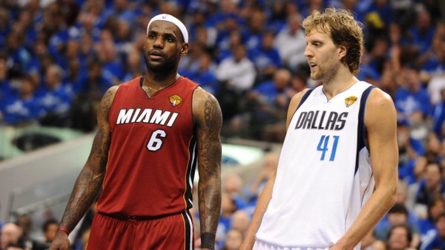 El debate sobre si es necesario reducir la duración de los partidos está abierto por completo dentro de la NBA y los aleros estrellas, el alemán Dirk Nowitzki, y LeBron James, se convirtieron en los primeros jugadores que consideran que lo más importante tal vez sería tratar de acortar el calendario oficial de la competición de liga. El más directo y claro en sus ideas fue Nowitzki cuando dijo que no veía la necesidad que la NBA comenzase a experimentar con la reducción de cuatro minutos en la duración de los partidos sino que lo "ideal" seria que la competición regular de liga fuese de 60 partidos en lugar de 82. Aunque James no fue tan categórico como Nowitki, el jugador franquicia de los Mavericks de Dallas, si estuvo de acuerdo que del alguna manera se tendría que valorar con seriedad la necesidad de proteger más a los jugadores del desgaste físico excesivo que puedan sufrir. Sin embargo, ambos también son conscientes y admiten que se trata de un deporte negocio en el que están en juego muchos millones de dólares como ha quedado demostrado con la firma del último contrato de televisión (2,66 millones de dólares), casi tres veces más lucrativo que el anterior (940 millones). "Creo que no es necesario 82 partidos para determinar los ocho mejores en cada conferencia," declaró Nowitzki. "Eso se podría hacer mucho más rápido, pero siempre entiendo que se trata de dinero, y significa que cada juego perdido son ingresos que se reciben y repercute en la liga, dueños y jugadores". Precisamente ese es el verdadero motivo por el que Nowitzki admitiese que es escéptico que a corto plazo se pudiese dar un cambio en esa dirección dentro de la NBA. Por su parte, James, al igual que Nowitzki, dijo que el problema dentro de la programación de la NBA no son los minutos que dura un partido sino la cantidad de los que les toca jugar cada pretemporada y temporada regular. "Cuando tú estas en el campo ya no tienes problemas con jugar 22 o 50 minutos, el problema está el número de partidos, especialmente cuando son muy seguidos", valoró James. "Entiendo que hay muchos intereses económico involucrados a la hora que se disputa un partido y de ahí que el asunto no es fácil". Lo que si tienen claro tanto Nowitzki como James al igual que el entrenador de los Heat de Miami, Erik Spoelstra, es que la programación de jugar dos partidos seguidos en menos de 24 horas y además con viaje en avión incluido no favorece a nadie, pero sobre todo al rendimiento de los jugadores. TEXTO: EFE