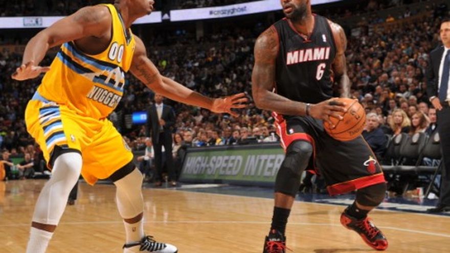 En el día de su cumpleaños, LeBron James volvió a las canchas, tras lesionarse una ingle. No pareció tener problema alguno para encontrar su toque frente al aro. James anotó 26 puntos para que el Heat de Miami superara el lunes 97-94 a los Nuggets de Denver pese a perder a Dwyane Wade y Norris Cole durante el encuentro. "Me dejaron desmarcado en la línea de tres puntos. Hice nueve triples y me sentí bien en todos", dijo James, quien convirtió cinco. "La ingle no me dio problemas en absoluto". James, quien cumplió 29 años, se lastimó la ingle el viernes durante un partido que el Heat perdió ante Sacramento en tiempo de prórroga. El astro se perdió el siguiente compromiso, una victoria en Portland, el sábado. Su regreso condenó a los Nuggets a su séptima derrota consecutiva. De ninguna manera le molestó a James jugar en su cumpleaños. "No, este día no es algo especial", comentó. "Lo especial es jugar con mis compañeros, encontrarse en buena forma, estar ahí y ayudar a que ganáramos un partido de visitantes". Chris Bosh anotó 17 puntos y Ray Allen agregó 13, incluidos seis en los últimos 5:08 minutos, para que Miami sumara su novena victoria en 11 encuentros. Ty Lawson contabilizó 26 puntos para liderar a los Nuggets, que sufrieron su segunda derrota en fila ante Miami en el Pepsi Center, luego de ganar los 10 encuentros anteriores. Cole abandonó la cancha a la mitad del tercer periodo, luego de caer en un intento de enceste y golpearse el rostro contra el piso. Había ingresado al duelo en el lugar de Wade, quien no volvió después del intermedio, debido a calambres en la espalda. También el lunes, Tyreke Evans encestó a unos cinco metros del aro y con 1,2 segundos por jugarse, para que los Pelicans de Nueva Orleáns superaran 110-108 a los Trail Blazers de Portland. El gran enceste de Evans llegó justo después de que Damian Lillard, quien ha embocado tiros que han significado varios triunfos en la campaña, acertó un triple que empató el marcador a 108. Nueva Orleáns, que ganó su cuarto encuentro consecutivo como local, nunca estuvo en desventaja en la segunda mitad, pero tampoco tuvo una ventaja superior a cinco puntos en los últimos 10 minutos. Jrue Holiday anotó 31 puntos, su mayor cifra en la campaña, incluidos 15 en el cuarto periodo, y empató su mejor marca de la temporada con 13 asistencias por los Pelicans. Anthony Davis añadió 27 puntos, 12 rebotes y cinco tapas. Evans totalizó 20 tantos. Holiday, adquirido en un canje con Filadelfia en junio, acertó siete disparos en el cuarto periodo, cuando el marcador estaba empatado o los Pelicans ganaban por dos puntos o menos. Empató también su mejor marca de la campaña en asistencias, con 13. "Simplemente traté de ser agresivo... confié en mi tiro, me sentí bien y lo logré en el momento oportuno", dijo. Davis obligó a que LaMarcus Aldridge hiciera un difícil disparo desde la línea de fondo. El balón rebotó en la cresta del tablero mientras el tiempo se agotaba. En otros partidos, los Wizards de Washington derrotaron 106-99 a los Pistons de Detroit, con 29 puntos de John Wall y 11 del brasileño Nené, y los Mavericks de Dallas superaron 100-98 a los Timberwolves de Minnesota, con 32 puntos de Shawn Marion. Además, los Bulls de Chicago se impusieron 95-91 a los Grizzlies de Memphis; el Jazz de Utah superó 83-80 a los Bobcats de Charlotte, y los Suns de Phoenix aplastaron 107-88 a los Clippers de Los Ángeles.