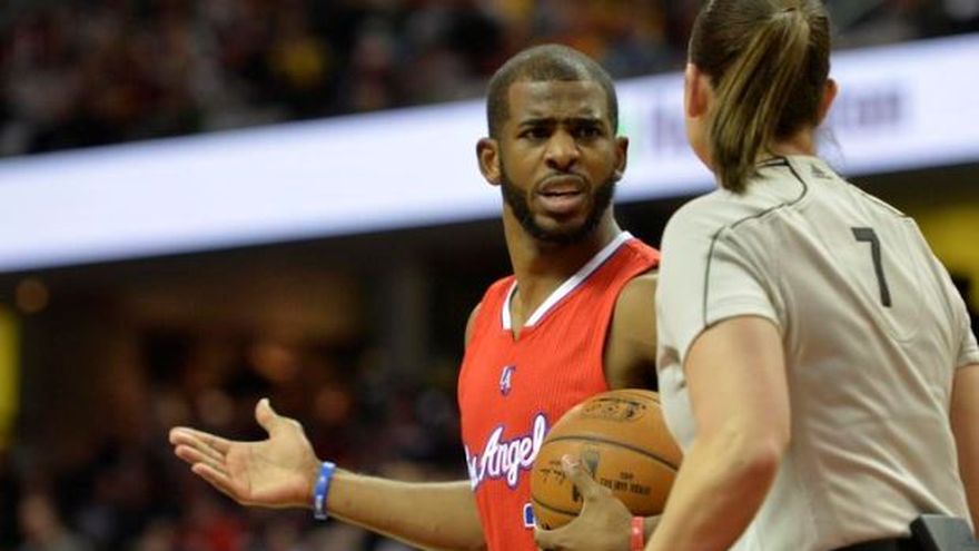 Chris Paul le reclama a Lauren Holtkamp luego que le marcara la falta técnica.