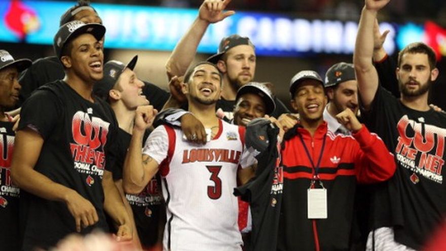 Luke Hancock encestó sus cinco tiros de tres puntos y llevó a Louisville a obtener su primer campeonato universitario de baloncesto desde 1986 con una victoria de 82-76 sobre Michigan. El entrenador Rick Pitino agregó este título al que ganó en Kentucky en 1996 y es el primero en ganar un torneo en dos escuelas. Este lunes temprano, Pitino fue elegido para estar en el Salón de la Fama del Naismith Memorial. Hancock tuvo 22 puntos y Peyton Siva 18 para los Cardinals (35-5), que iban perdiendo por 12 al final de la primera mitad. Trey Burke encestó 24 puntos para Michigan (31-8), que estuvo en la final por primera vez desde que los fabulosos cinco guiaran a los Wolverines en 1993. Spike Albrecht agregó 17 tantos. Pero la celebración pertenecía a los Cardinals, que agregaron esta victoria a una en el Tazón de Azúcar este año y también tienen la final femenil de su equipo el martes ante Connecticut. Chane Behanan anotó rápido nueve puntos al inicio de la segunda mitad para ayudar a Louisville a tomar la delantera después de ir perdiendo por más de dos dígitos. Behanan terminó con 15 puntos y 13 rebotes, incluyendo ocho ofensivos. Albrecht entró por Burke y acertó sus primeros cuatro intentos de tres puntos, anotando todos sus tantos en la primera mitad.
