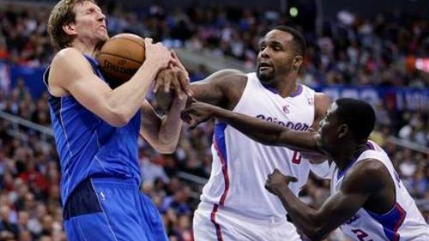 LOS ÁNGELES (AP) -- El alemán Dirk Nowitzki anotó 26 puntos, el español José Calderón añadió 19 y los Mavericks de Dallas vencieron el jueves a los Clippers de Los Ángeles por primera ocasión en la campaña, 113-107. Blake Griffin sumó 25 unidades, 10 rebotes y 11 asistencias, en su primer "triple doble" de la campaña por los Clippers, que habían ganado 17 de sus 19 duelos anteriores, incluidos cuatro consecutivos. Los Ángeles superó a los Mavs en sus primeros tres enfrentamientos de la temporada, en cada uno de los cuales remontaron. Una noche antes, los Clippers se recuperaron de un déficit de 17 puntos para imponerse en Phoenix. Amarraron así su segundo título consecutivo en la División del Pacífico y su tercer boleto en fila a los playoffs. Esta vez sólo se quedaron cerca de remontar.