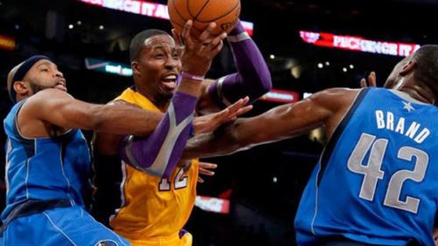 Darren Collison anotó 17 puntos, Brandan Wright añadió 14 y los Mavericks de Dallas le arruinaron el debut en Los Ángeles a Dwight Howard y Steve Nash con una victoria de 99-91 sobre los Lakers el martes por la noche. O.J. Mayo tuvo 12 puntos por los remodelados Mavericks, que lograron la sorpresa de la noche inaugural de la campaña, venciendo cómodamente a unos Lakers llenos de estrellas sin ayuda del lesionado Dirk Nowitzki. Kobe Bryant anotó 22 puntos jugando un una lesión en el pie derecho, pero los Lakers abrieron una temporada de enormes expectativas con un desempeño mediocre. Howard tuvo 19 de 10 rebotes, y falló 11 de sus 14 tiros libres, antes de salir del partido por seis faltas a 2:02 del final. Nash consiguió solamente siete puntos y cuatro asistencias. Pau Gasol terminó con 23 puntos y 13 rebotes por los Lakers, que siguieron una pretemporada de 0-8 con una segunda mitad mayormente apática el martes ante una muchedumbre que esperaba ver un equipo capaz de contender por el 17 cetro de la franquicia — un hecho reconocido por Bryant cuando le habló a los fanáticos antes del juego. "Como ustedes saben, tenemos muchas expectativas esta temporada", dijo Bryant. "Estamos tratando de justificarlas. Vamos a tratar de traer otro campeonato al lugar que le corresponde, a Los Angeles". Pero los Lakers mostraron que aún les queda mucho por hacer. Dallas se alejó consistentemente para tomar una ventaja de 16 puntos en la segunda mitad, sin permitirle mayores amenazas a sus desorganizados rivales. El quinteto abridor de Los Angeles apenas jugó junto en la primera pretemporada sin victorias en la historia de la franquicia, y esa falta de familiaridad se vio cada vez que tenían el balón. Vince Carter, Shawn Marion y Rodrigue Beaubois anotaron 11 puntos cada uno para los Mavericks, que frenaron una racha de seis derrotas contra los Lakers en las últimas dos campañas. Jae Crowder anotó ocho puntos en su debut en la NBA con los Mavericks, que muy probablemente estarán sin su astro Nowitzki por al menos seis semanas mientras el alemán se recupera de una artroscopía.