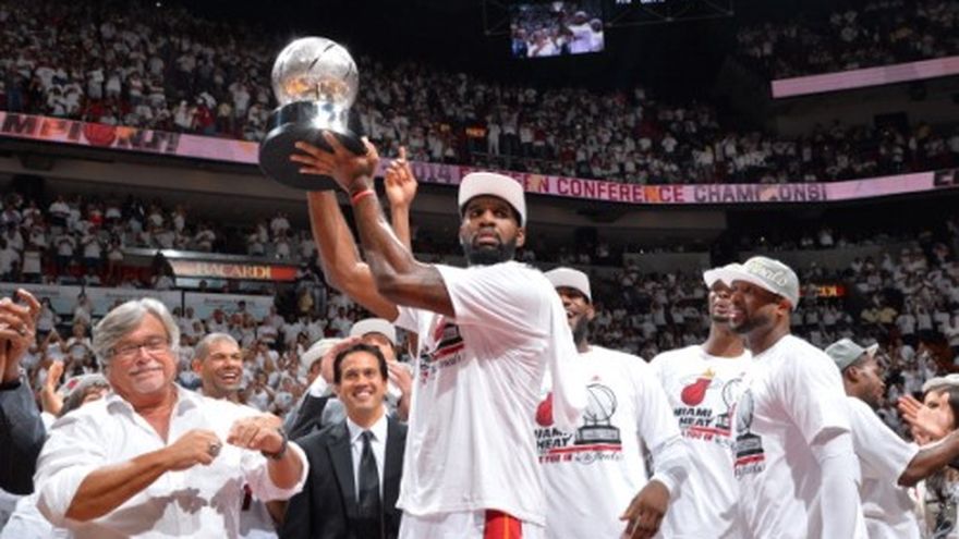 MIAMI (AP) -- Durante toda la campaña regular, la supremacía del Heat de Miami en la Conferencia Este fue puesta en serias dudas por los Pacers de Indiana. Llegaron los playoffs y las dudas se despejaron de una manera enfática. El Heat se convirtió en el tercer equipo en la historia en ganar la serie por el título de la conferencia por cuarto año consecutivo, luego de una paliza para concluir su serie de encuentros ante Indiana. LeBron James y Chris Bosh anotaron 25 puntos cada uno y Miami eliminó a los Pacers por tercer año en fila, con una humillación de 117-92 en el sexto juego de la final del Este. "Me siento bendecido, me siento muy bendecido. Con mucha humildad", declaró James. "Y no damos esta oportunidad por hecho. Es un equipo increíble, es un grupo increíble. Sabemos que tenemos trabajo que hacer, no damos nada por hecho. Vamos a la cuarta final consecutiva", afirmó el jugador. Dwyane Wade y Rashard Lewis anotaron 13 puntos cada uno por Miami, que estuvo abajo 9-2 antes de anotar 54 de las siguientes 75 unidades para despejar cualquier duda al medio tiempo. El Heat impuso una marca del conjunto con 11 triunfos seguidos en postemporada como local, racha que se remonta a los últimos dos partidos de las finales del año pasado, logrando tener ventaja de 37 tantos en un punto del encuentro. "El grupo adora competir y competir al más alto nivel, que le exigen hacia nuevos niveles", declaró el entrenador del Heat, Erik Spoelstra. Indiana lideró el Este durante gran parte de la temporada regular, impulsados por el recuerdo de perder el séptimo juego de las finales del Este en Miami hace un año. Así que pasaron esta campaña con un objetivo en mente: Superar a Miami como los reyes del Este. Los Pacers fueron dos juegos mejores en la campaña regular y fueron dos juegos peores en la postemporada. El séptimo juego, en esta ocasión, hubiera sido en Indianápolis. Los Pacers simplemente no tuvieron oportunidad de alcanzarlo, no esta noche. "Es una amarga decepción no alcanzar nuestros objetivos", declaró el entrenador de los Pacers, Frank Vogel. "Es muy amargo perder ante este equipo por tercer año consecutivo. Pero estamos compitiendo contra el Michael Jordan de nuestra era, contra los Bulls de Chicago de nuestra era, y hay que inclinarse el sombrero ante ellos por la forma como jugaron toda la serie", apuntó. Así que ahora, Celtics y Lakers ya tienen compañía. Hasta el viernes, eran los únicos equipos en la historia de la NBA en llegar a las Finales cuatro temporadas consecutivas. El Heat se les unió, y su búsqueda por un tricampeonato inicia el jueves ya sea en San Antonio u Oklahoma City. Por la manera en que jugaron el sexto encuentro, Bosh se convirtió en profeta, al predecir que Miami jugaría su mejor partido de la campaña. Los números sugieren que estaba en lo correcto, por decir lo menos. La mayor ventaja de Miami en algún punto de la campaña, antes del sexto juego, fue de 36 puntos. La peor desventaja que enfrentaron los Pacers en la temporada, había sido de 35 unidades. Tras una bandeja de James con 3:39 por jugar en el tercer cuarto, el margen del partido era de 37 tantos: 86-49. La noche de James terminó poco después. Por los Pacers, Paul George fue el mejor anotador con 29 unidades, mientras que David West aportó 16 y Lance Stephenson 11.