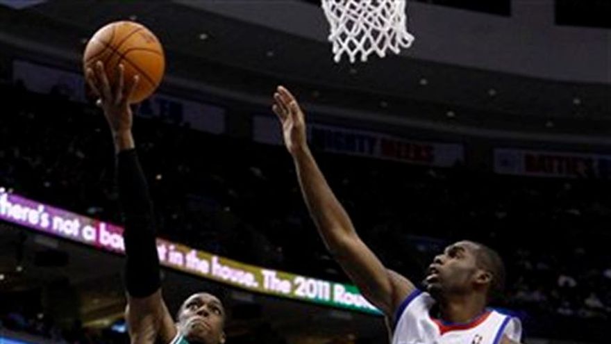 Kevin Garnett realizó una clavada tomando en el aire un pase cuando restaban 1,4 segundos de juego para dar el jueves a los Celtics de Boston su noveno triunfo consecutivo tras superar por 102-101 a los 76ers de Filadelfia. Después de que Andre Iguodala realizó una carga por Filadelfia para encestar en un gancho con 6,6 segundos por jugarse y entregarle a los 76ers una ventaja de 101-100, Rajon Rondo realizó un pase largo a Garnett para la canasta definitiva. Garnett corrió entonces al centro de la cancha para interceptar un pase de los 76ers. Ray Allen encabezó la ofensiva de Boston con 23 puntos, Rondo tuvo 19 unidades y 14 asistencias, Glen Davis agregó 16 puntos y Garnett terminó con 14. Jodie Meeks fue el líder ofensivo de Filadelfia con 19 unidades. El argentino Andrés Nocioni falló dos tiros de campo y ganó un rebote en 5:38 minutos.